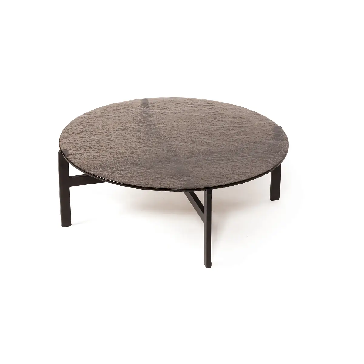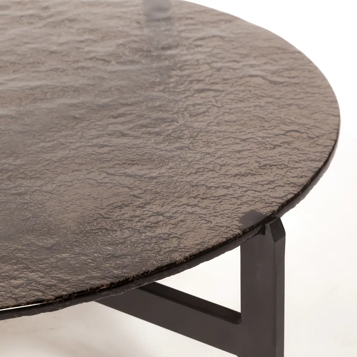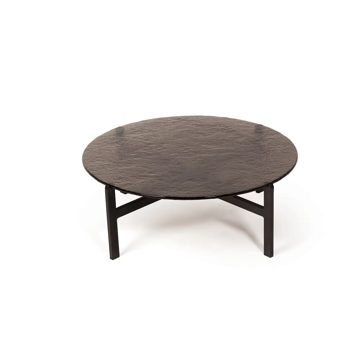 Круглая столешница диаметром 70 см изготовлена из высококачественного литого стекла.