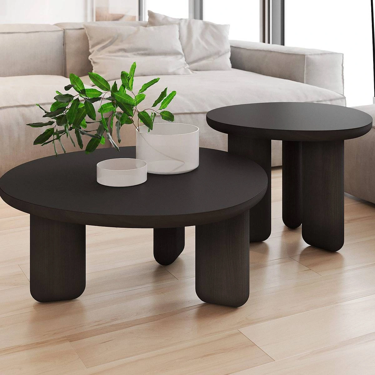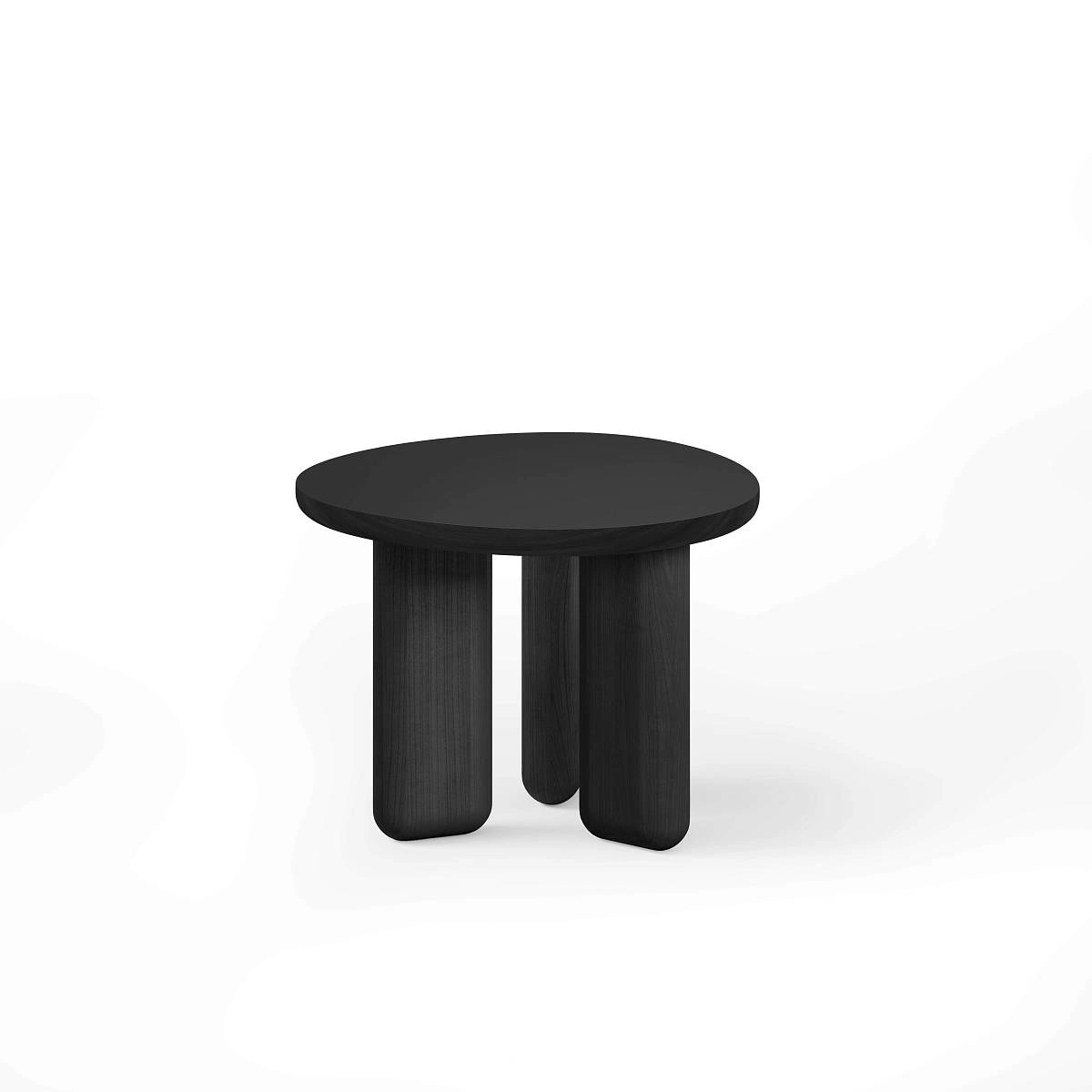 Столешница со скругленными углами диаметром 600 мм и толщиной 40 мм выполнена из МДФ, облицованного суперматовым пластиком fenix черного цвета.