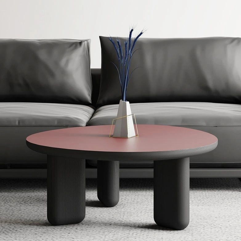 Столешница со скругленными углами диаметром 790 мм и толщиной 40 мм выполнена из МДФ, облицованного суперматовым пластиком fenix темно-красного цвета.