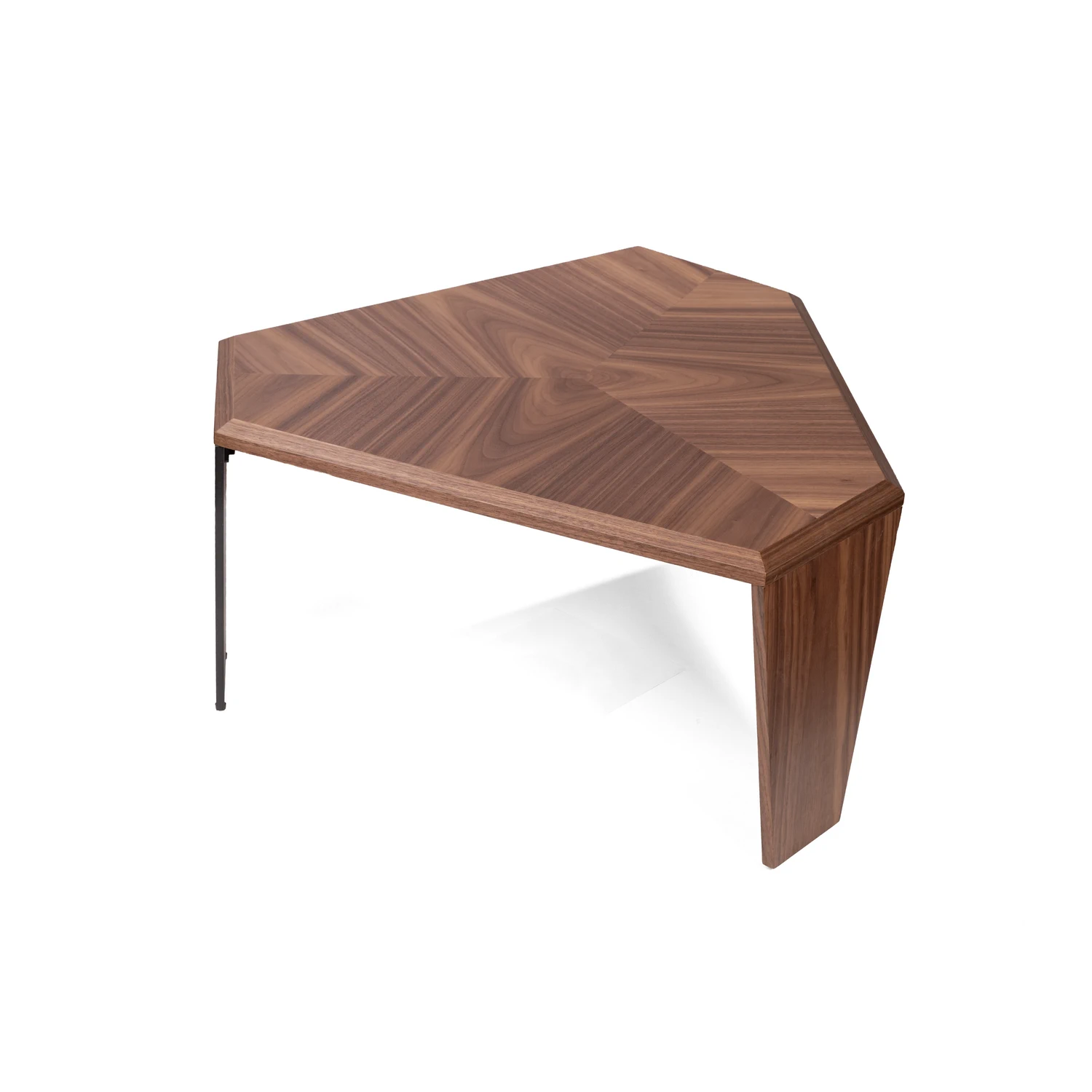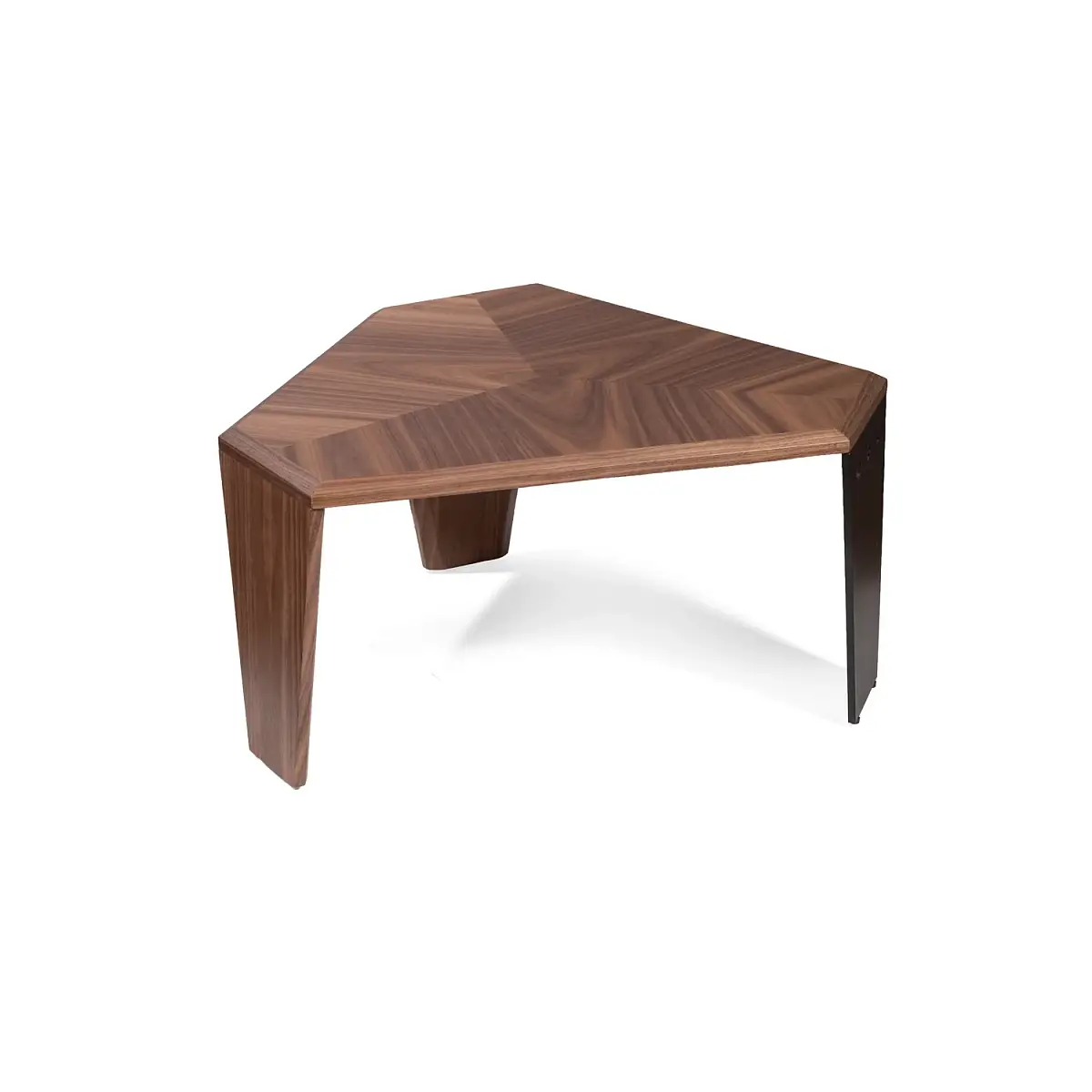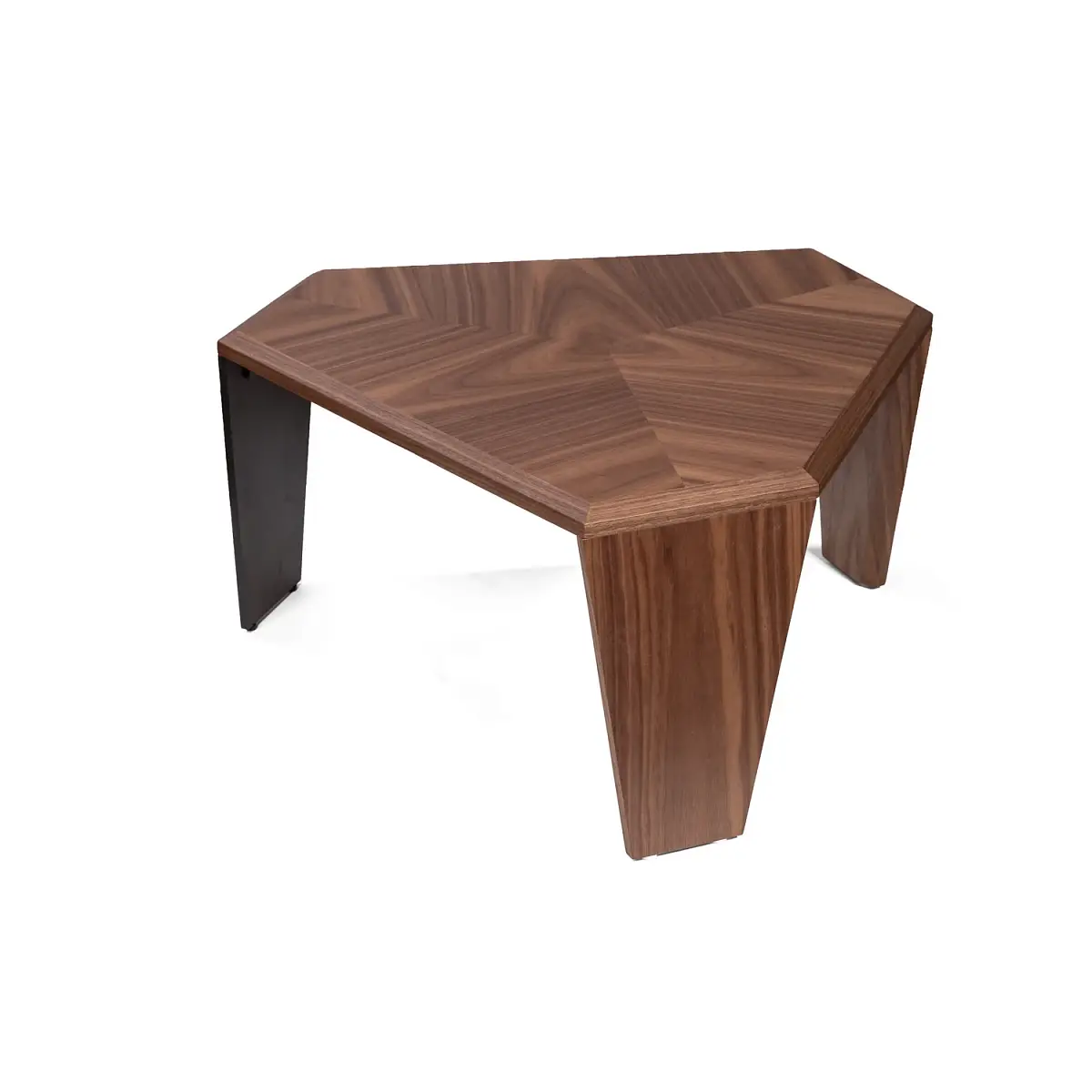 Треугольник — самая динамичная фигура в дизайне. В журнальном столике Nidji его энергия смягчена усеченными углами, превращающими строгую форму в элегантный гексагон (шестиугольник). Это акцент, который невозможно не заметить. Благодаря идеальным пропорциям и живой текстуре дерева, этот стол будет естественным центром притяжения для зон отдыха, шоурумах или просторных гостиных.