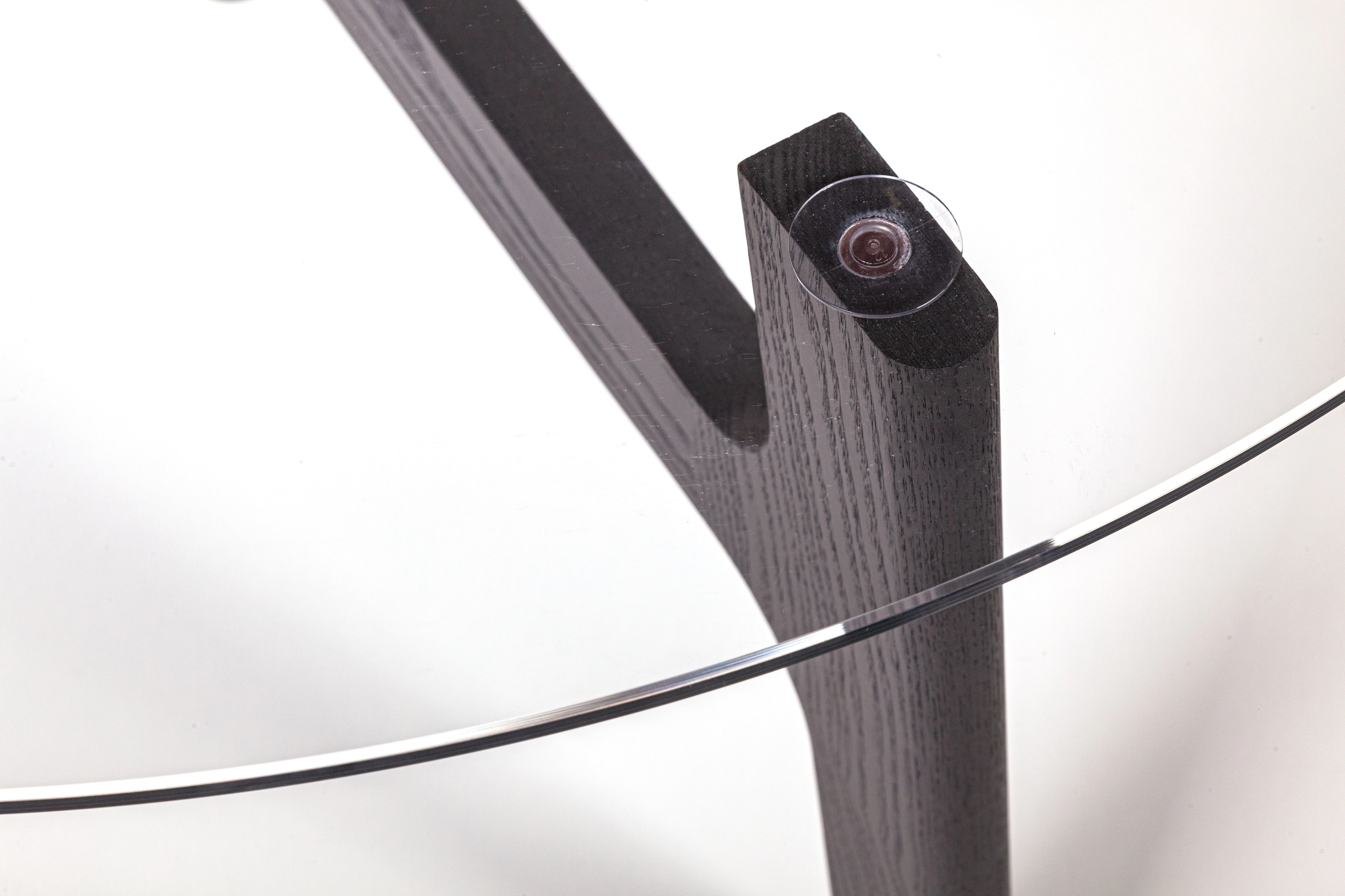 Опоры журнального стола Woddy выполнены из натурального дерева — ясень, окрашены в цвет Черничный шоколад.