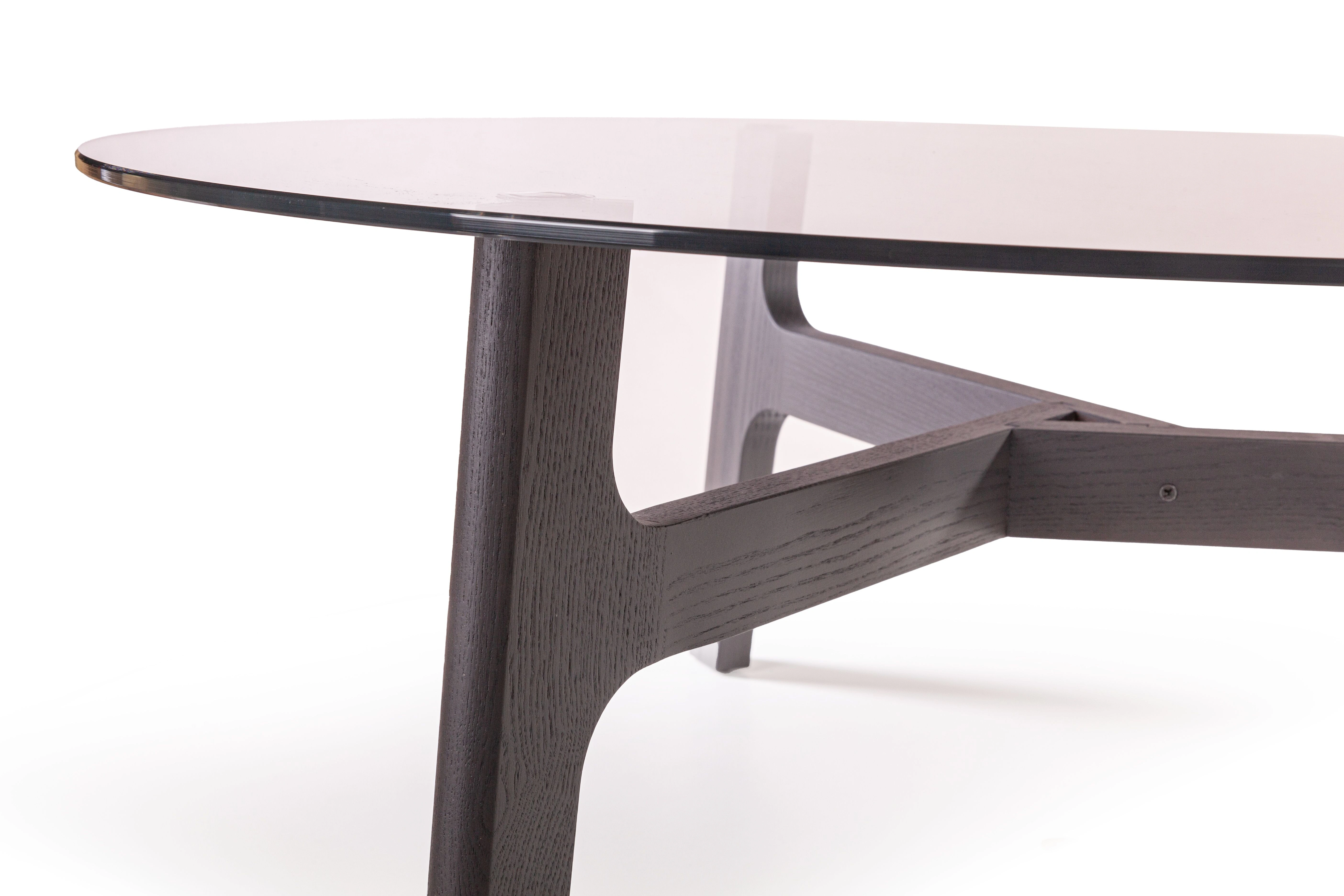 Журнальный столик Woddy - это стильный и функциональный элемент интерьера. Ножки из натурального дерева интересной формы акцентируют на себе внимание, а стеклянная столешница придает легкость в интерьере.