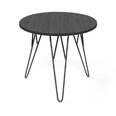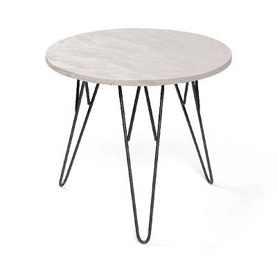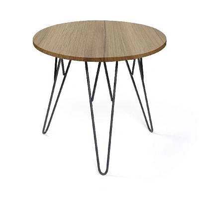 - OSTIN — со столешницей из шпонированного МДФ, стилизованной под бетон, мрамор или дерево ценных пород, и фигурной опорой из металла;