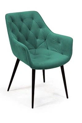 Стул с подлокотниками Hunt ромб, комплект (4шт), бархат зелёный 19 / чёрный конус
