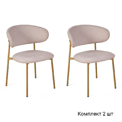 Стул Адель, комплект (2 шт), шенилл Puffy beige / опоры шампань