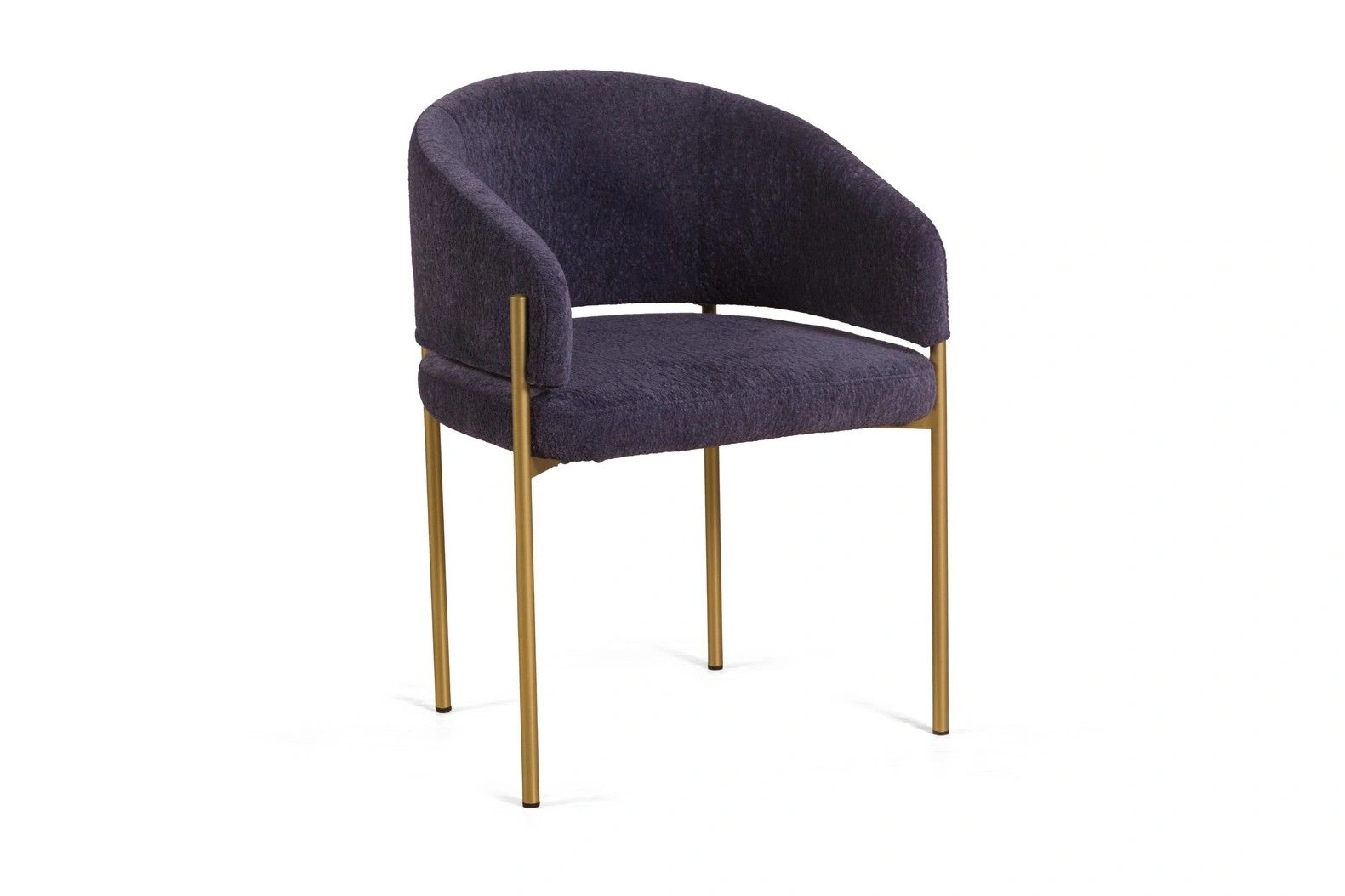 Элегантный мягкий обеденный стул с полукруглой спинкой и открытой линией поясницы. Тонкие металлические ножки визуально облегчают силуэт, при этом сохраняют устойчивость. Модель создана для современных интерьеров — от кухни и гостиной до ресторанов и lounge-пространств. Комфорт кресла и компактность стула в одном изделии.