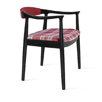 Полукресло Людвиг, бук натуральный, лак орех, шенилл красный