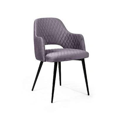 Стул William с подлокотниками ромб, бархат серый 27/ черный конус
