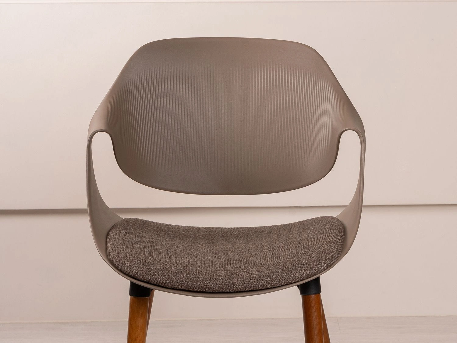 Дизайнерская форма стула отличается уникальными линиями и изогнутыми подлокотниками, что создает гармоничный и современный вид.