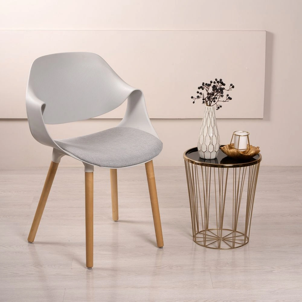 Стул Akella soft, (комплект 2 шт), пластик светло-серый / опоры дерево