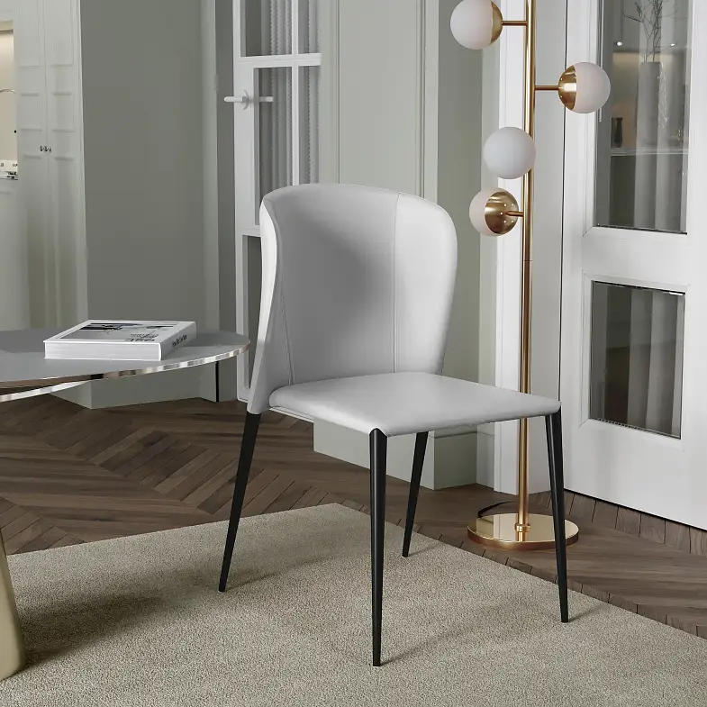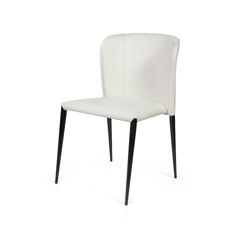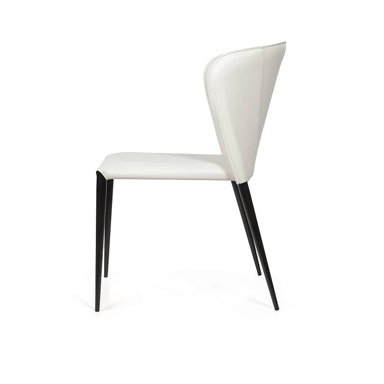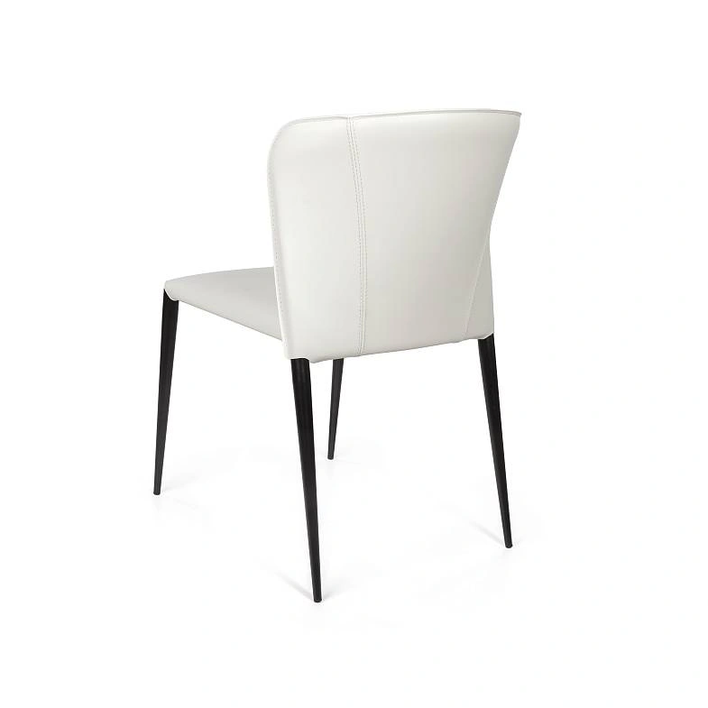 Изюминка стула Albert – невероятно тонкие металлические ножки черного матового цвета, излишне скошенные назад, как часть дизайнерской задумки. На ножках предусмотрены специальные пластиковые накладки, которые придают стулу дополнительную устойчивость и защищают пол от царапин.
