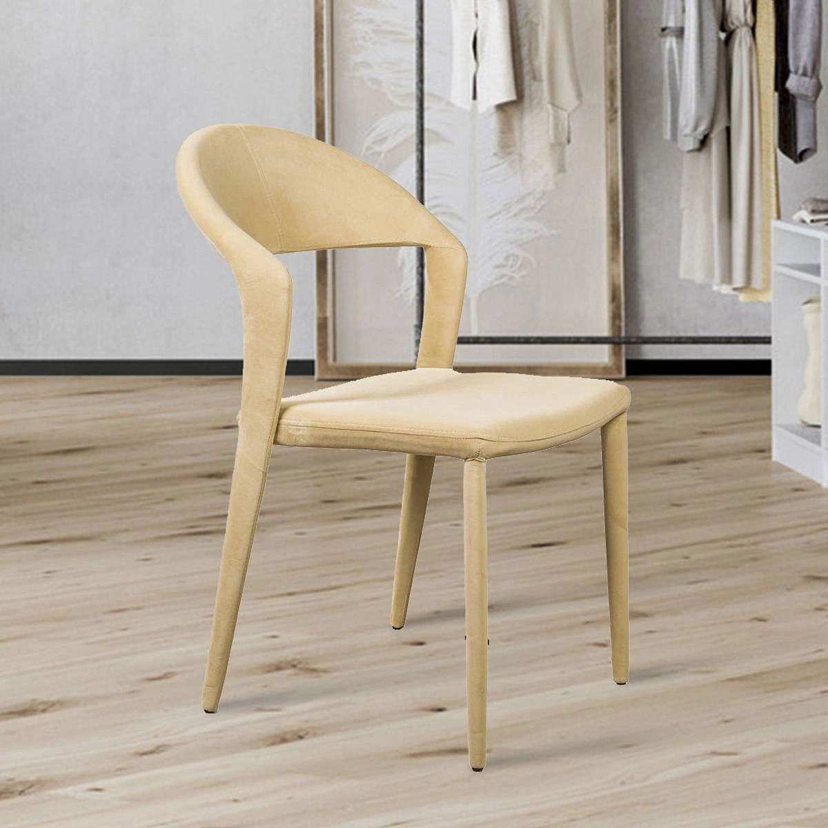 Обивка стула – бархат с минимизированным «пальчиковым эффектом» с декоративной строчкой в тон.