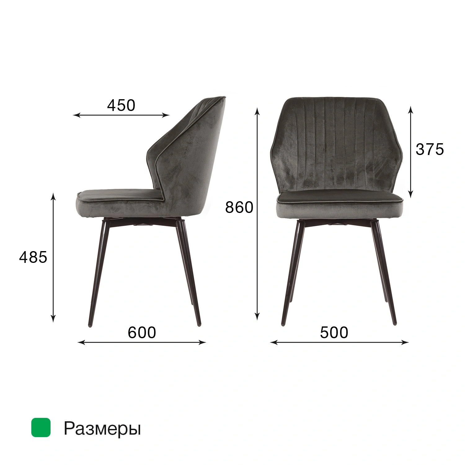 Стул Berg поворотный 360 градусов, комплект (2 шт), бархат антрацит 14/ черный конус
