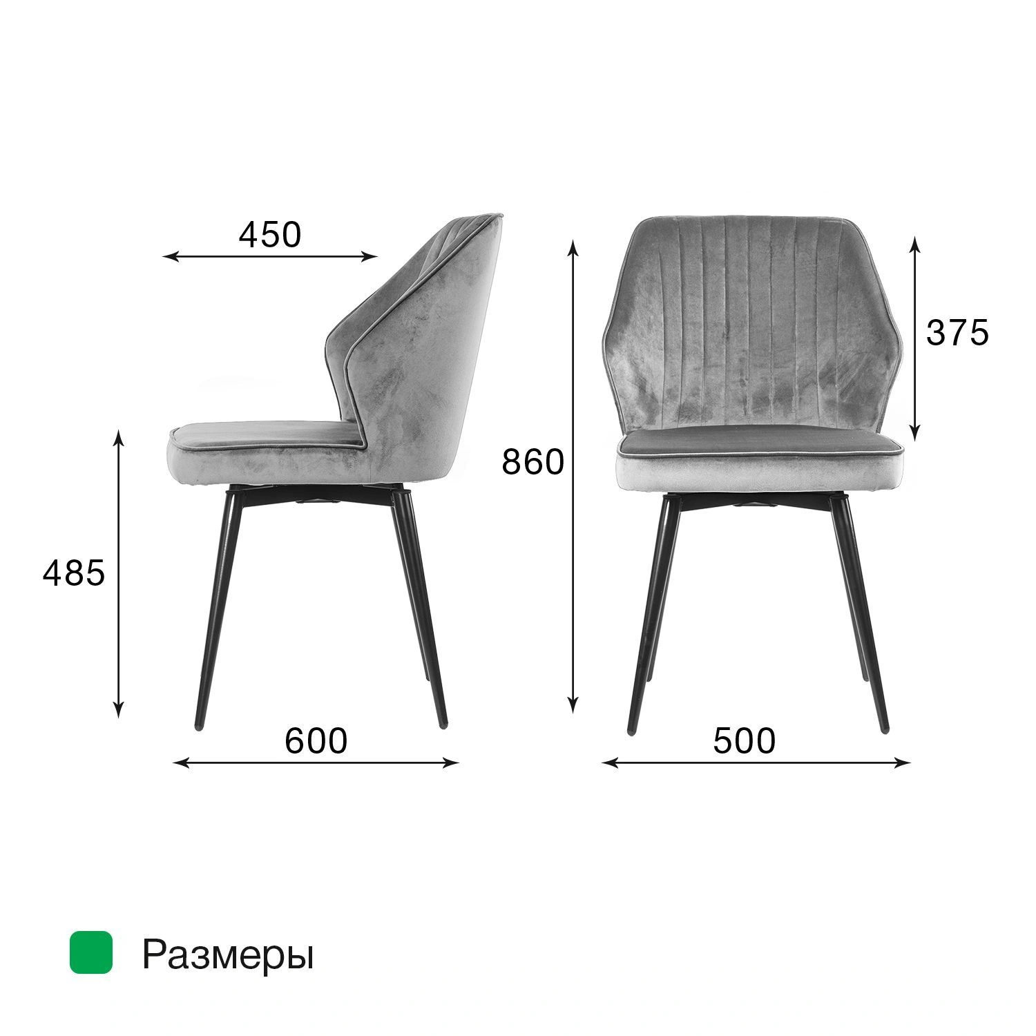 Стул Berg поворотный 360 градусов, комплект (2 шт), бархат светло-серый 26/ черный конус