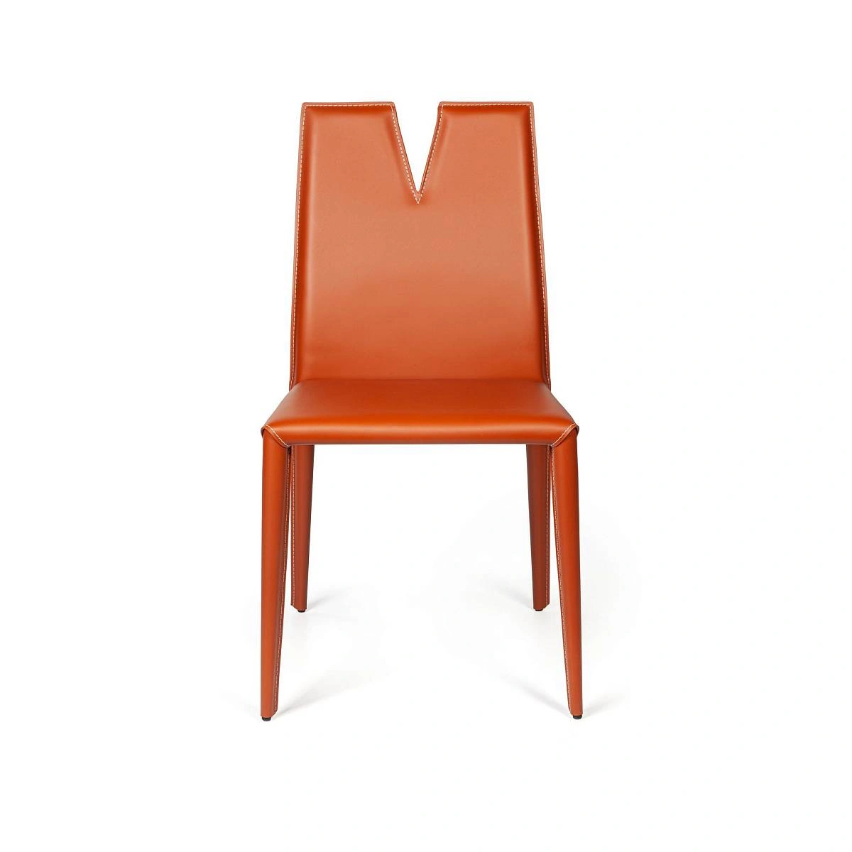 Яркий рыжий оттенок подчеркивает современный дизайн стула и создает энергичную атмосферу в помещении.