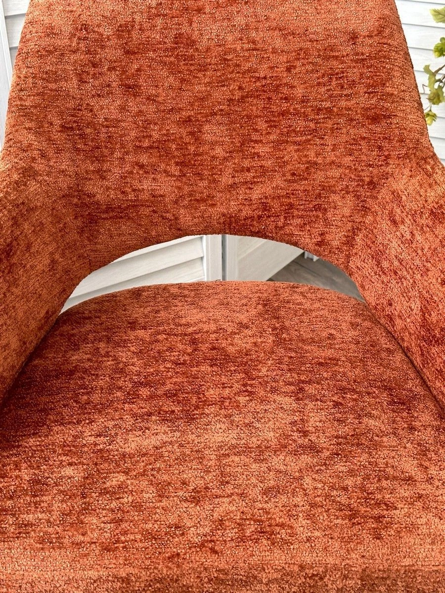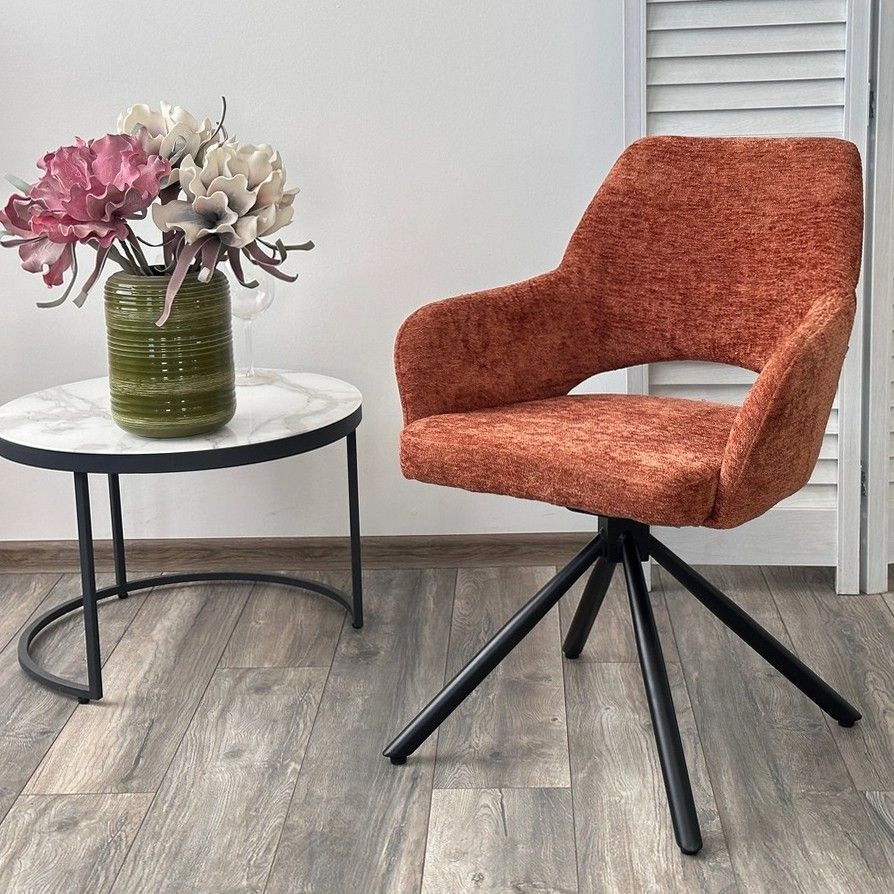 Стул Gandi в оранжевой обивке из шенилла с поворотно-возвратным механизмом на 180 градусов — это элегантное и функциональное решение для современных интерьеров. Его лаконичный дизайн с плавными линиями и эргономичной спинкой обеспечивает комфорт и эстетичность, делая его идеальным выбором для кухни, столовой или офиса.