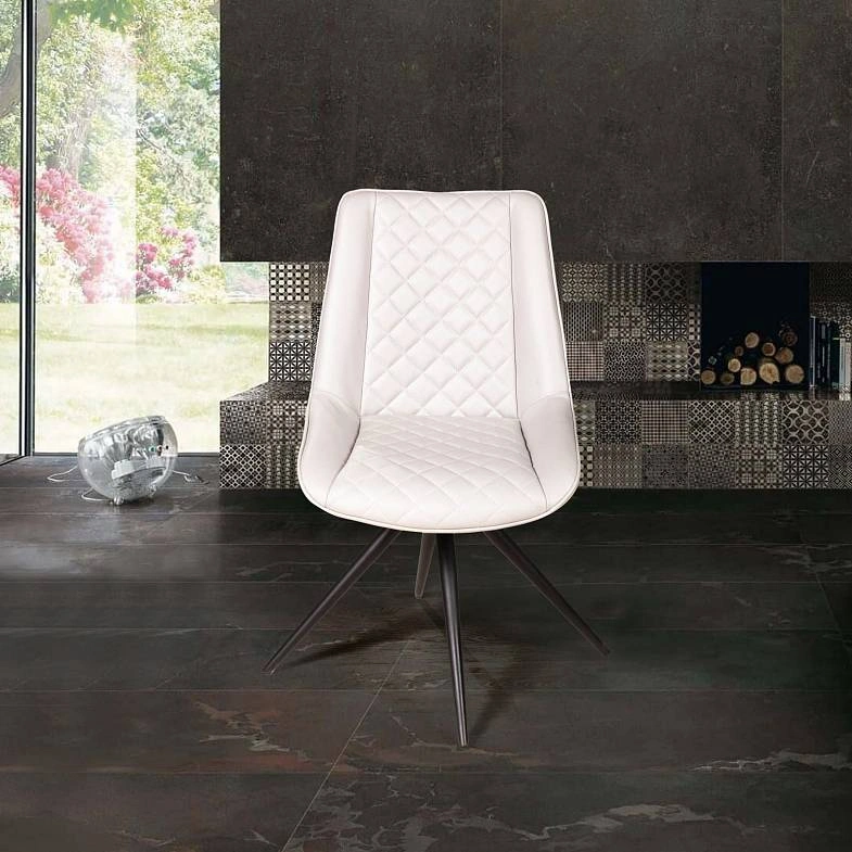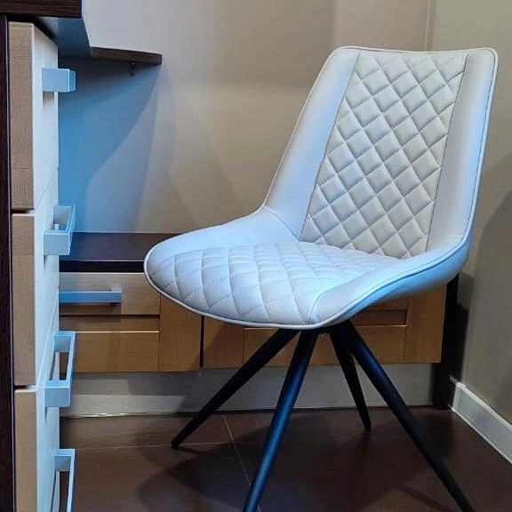 Стул установлен на стильные металлические ножки, которые гармонируют с общим дизайном и обеспечивают дополнительную устойчивость.