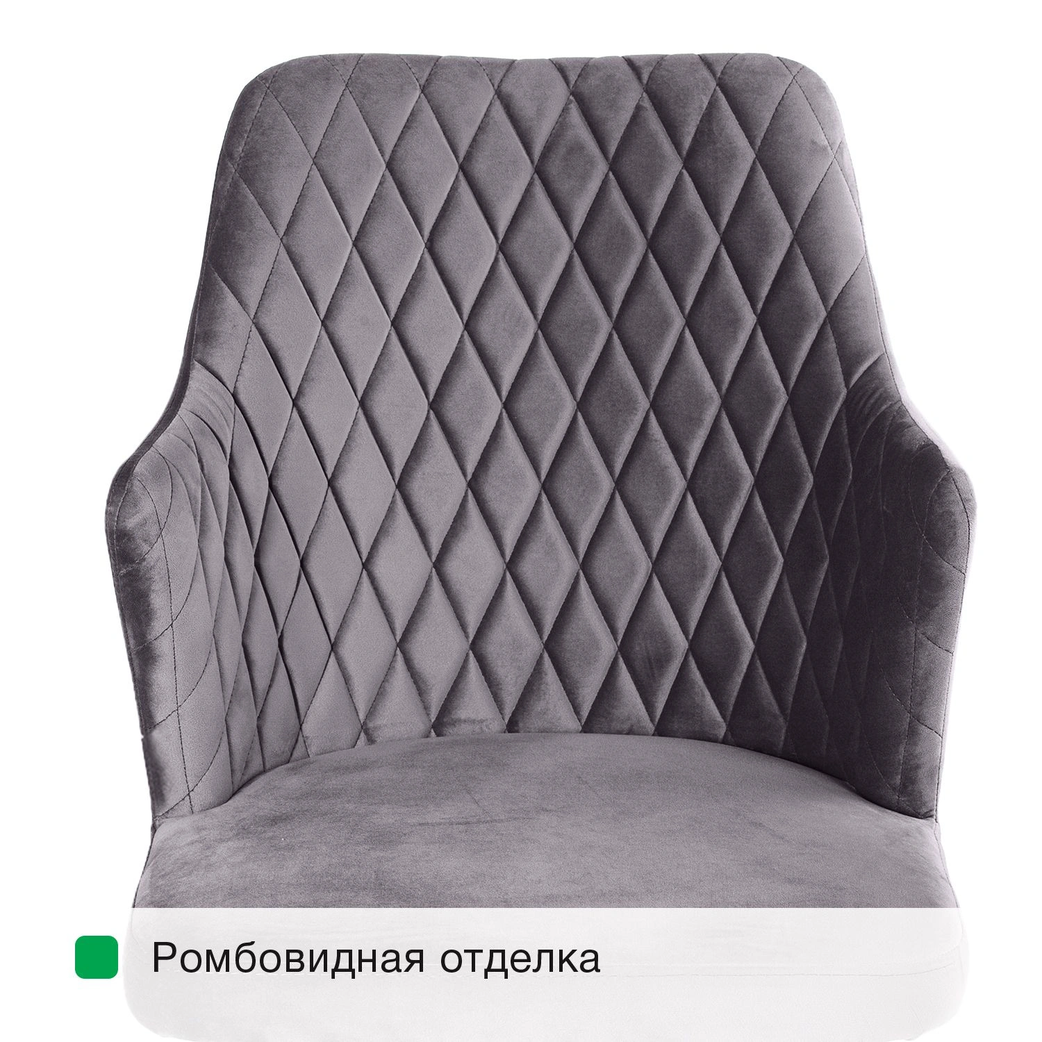 Дизайнерский стул «Hunt» c отделочной строчкой в виде ромба и острыми подлокотниками выглядит стильно и эффектно. Поворотный механизм на 360 градусов позволяет совершать полный оборот, сидя на стуле.