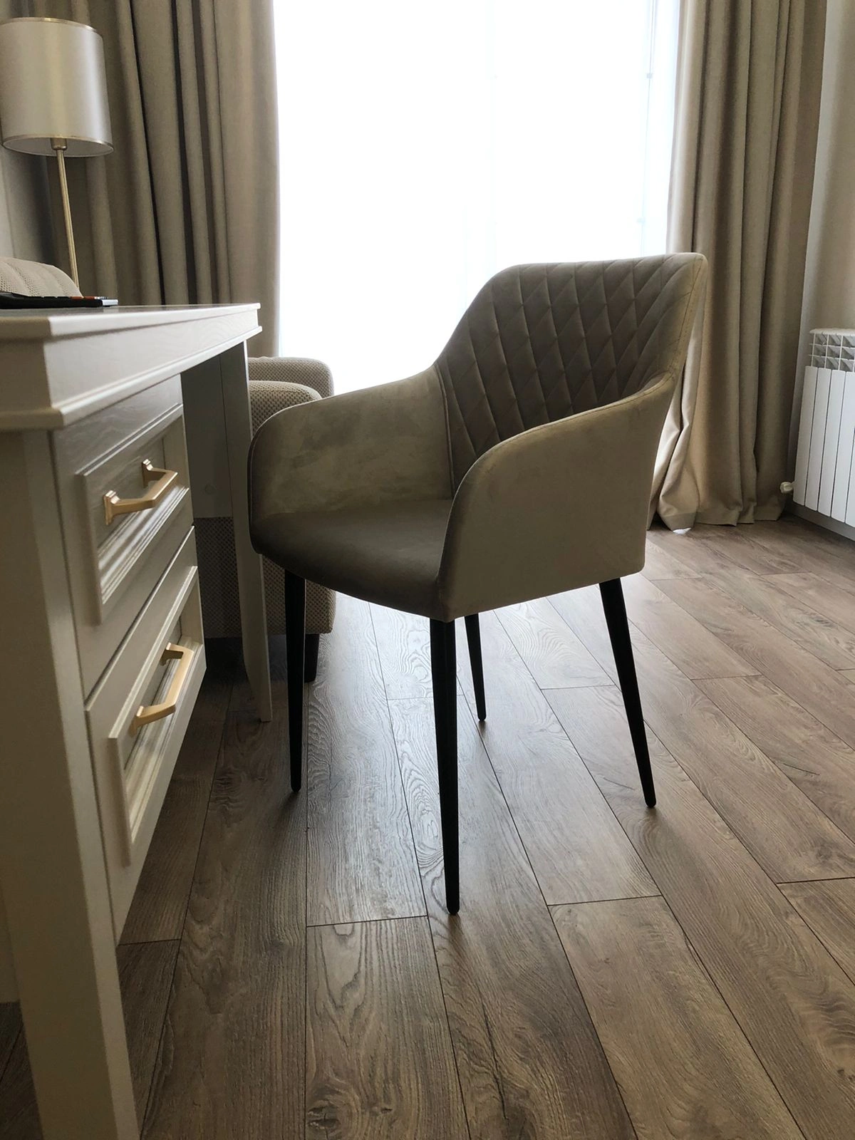 Роскошный и уютный стул в стиле арт-деко. Смотрится дорого, стильно и эффектно. Он создан, чтобы очаровывать с первого взгляда. Плавные линии, изящные ножки, просторное сиденье и высокие подлокотники делают модель невероятно удобной для отдыха. Стильная отделка ромбом на спинке и сиденье в сочетании с благородным бархатом создает неповторимые переливы и придает стулу особую утонченность.