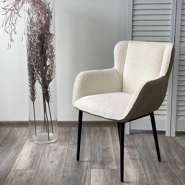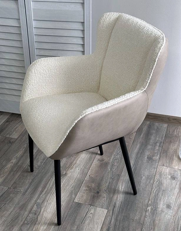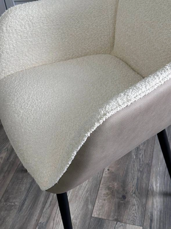 Обивка лицевой стороны стула Etna - ткань букле белого цвета, тыльной стороны - экокожа светло-бежевого цвета. Каркас стула металлический , порошковое покрытие, цвет черный.