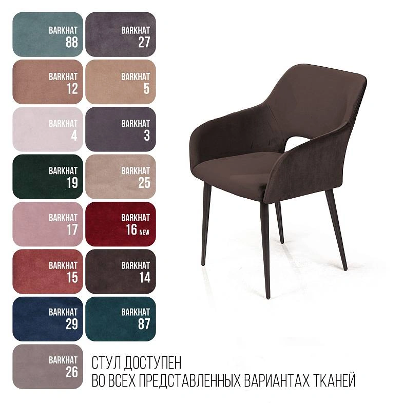 Стул с подлокотниками Charlie, комплект (4шт), бархат коричневый 12