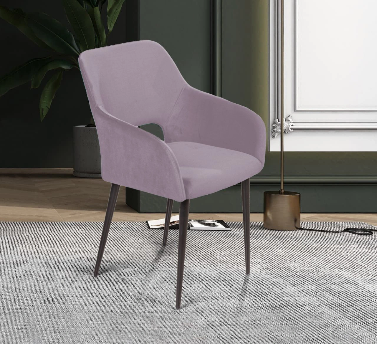 Высокая спинка, широкое сиденье, плавные линии подлокотников позволяют сидящему получить особый комфорт и чувство защищенности. Стул Charlie станет отличным вариантом оформления интерьера в гостиной, столовой, библиотеке, кабинете для переговоров или номера в гостинице.
