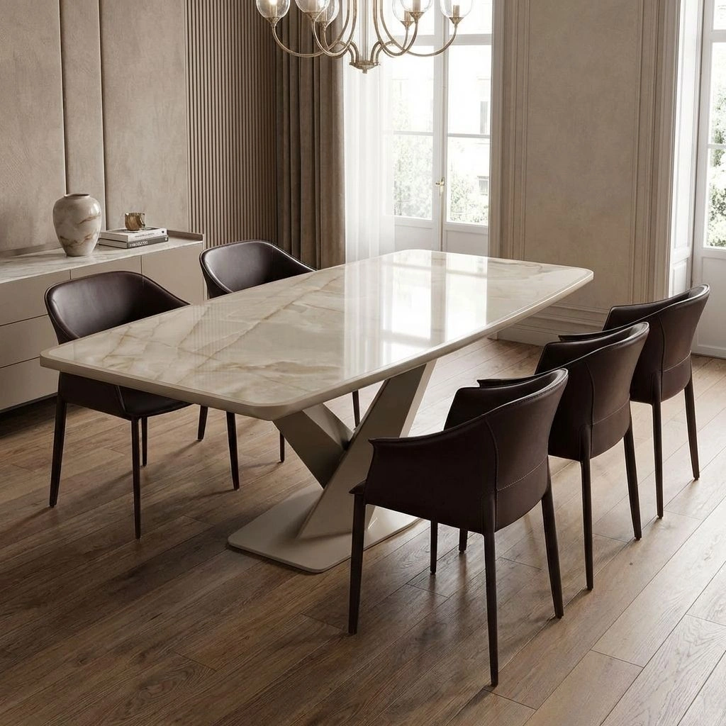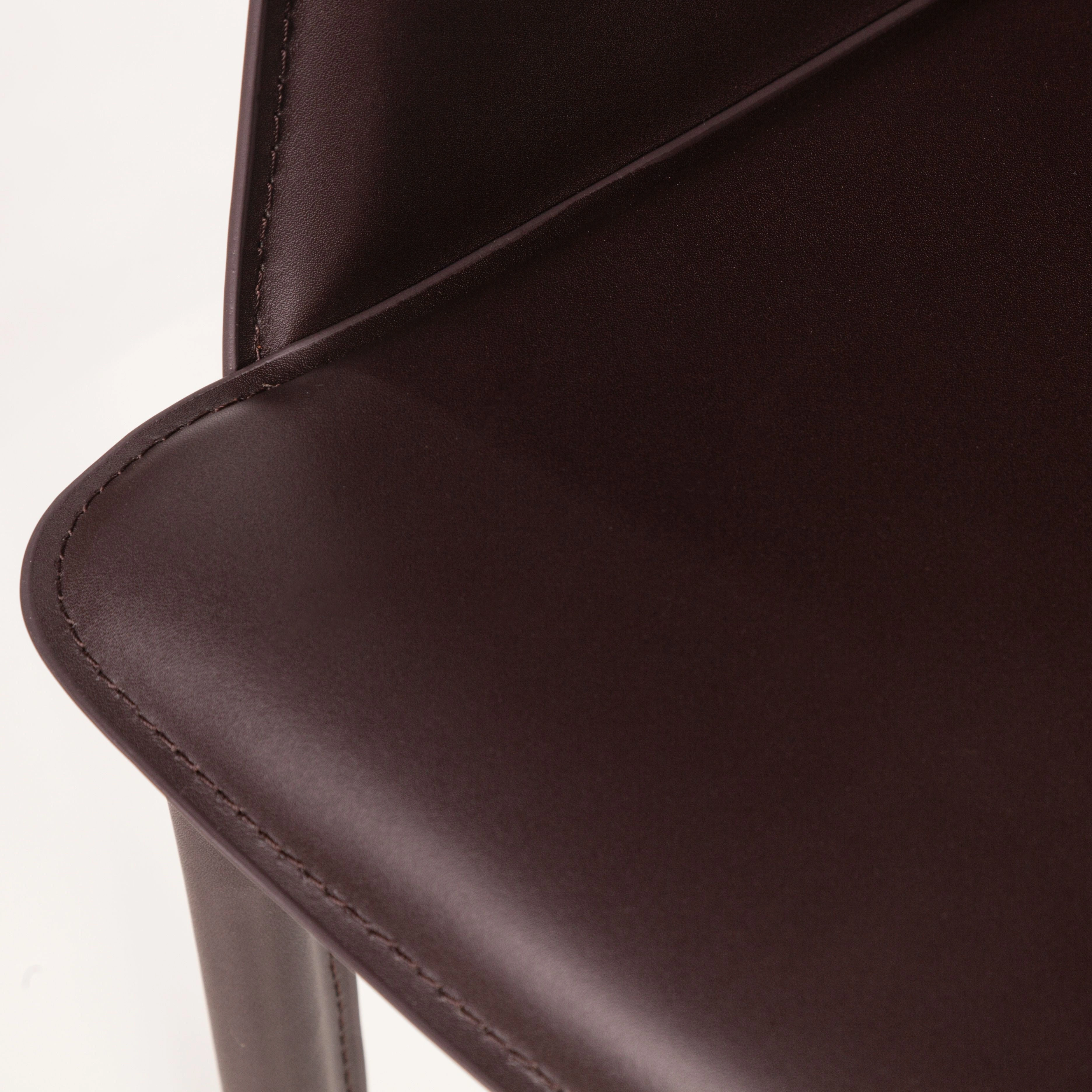 Стул обтянут высококачественной натуральной кожей, которая обеспечивает мягкость, износостойкость и долговечность. Этот материал подчеркивает роскошь изделия и делает его универсальным выбором для любого интерьера.