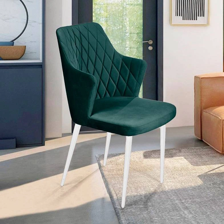 Дизайнерский стул «Hunt» c отделочной строчкой в виде ромба и острыми подлокотниками выглядит стильно и эффектно.