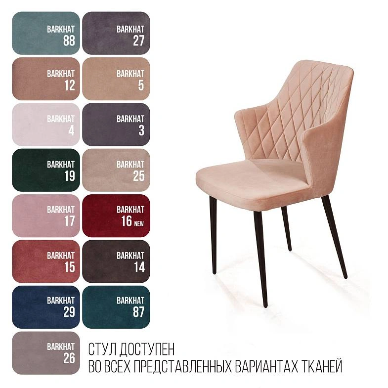 Стул с подлокотниками Hunt ромб, комплект (4шт), бархат бежевый 5