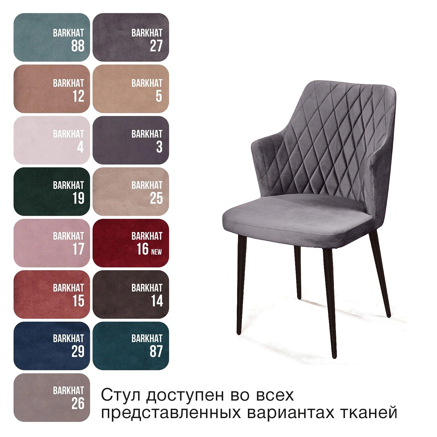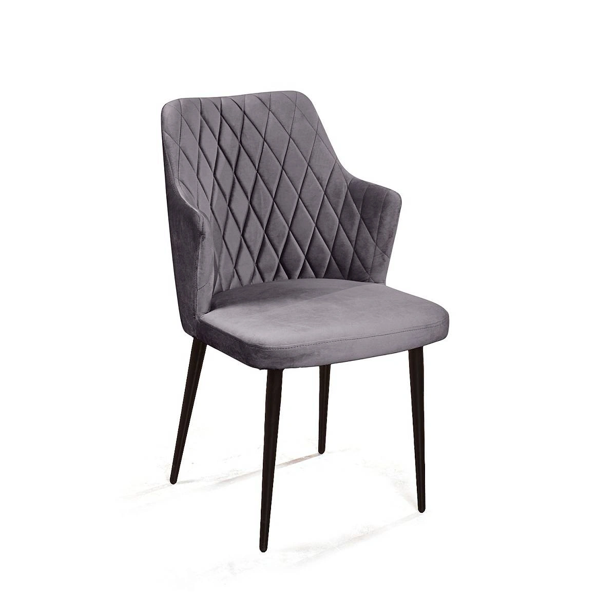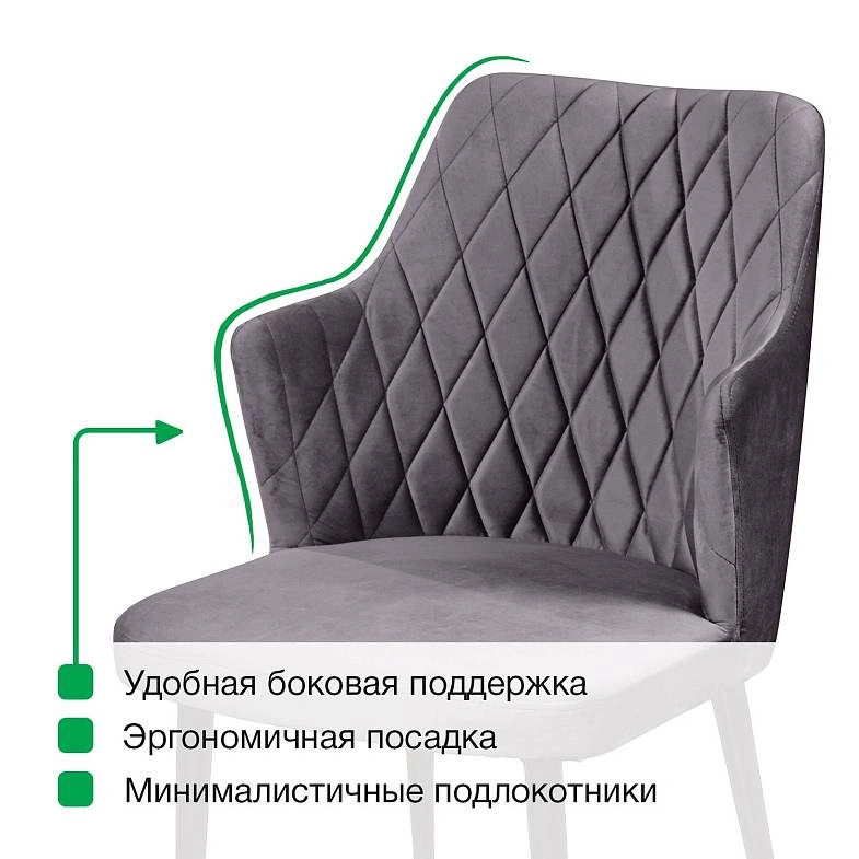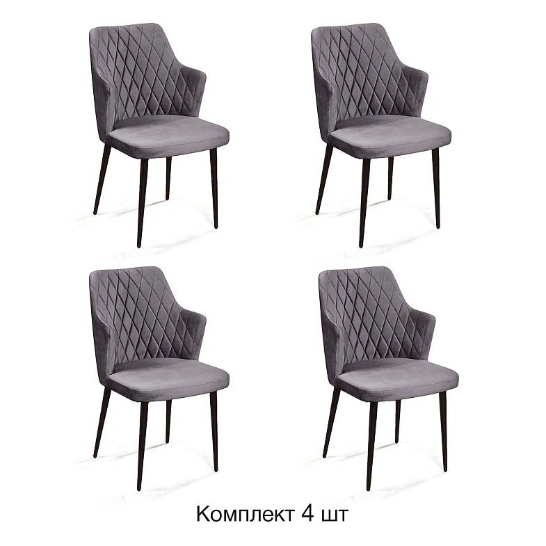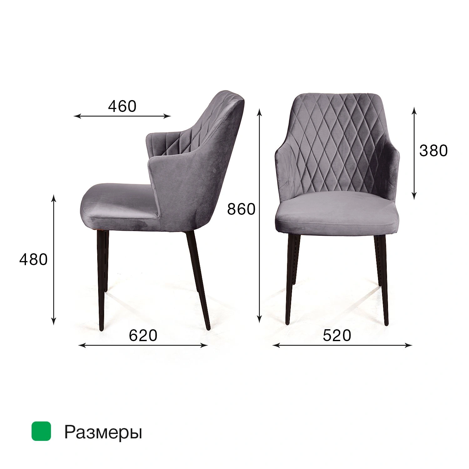Стул с подлокотниками Hunt ромб, комплект (4шт), бархат серый 27 / чёрный конус