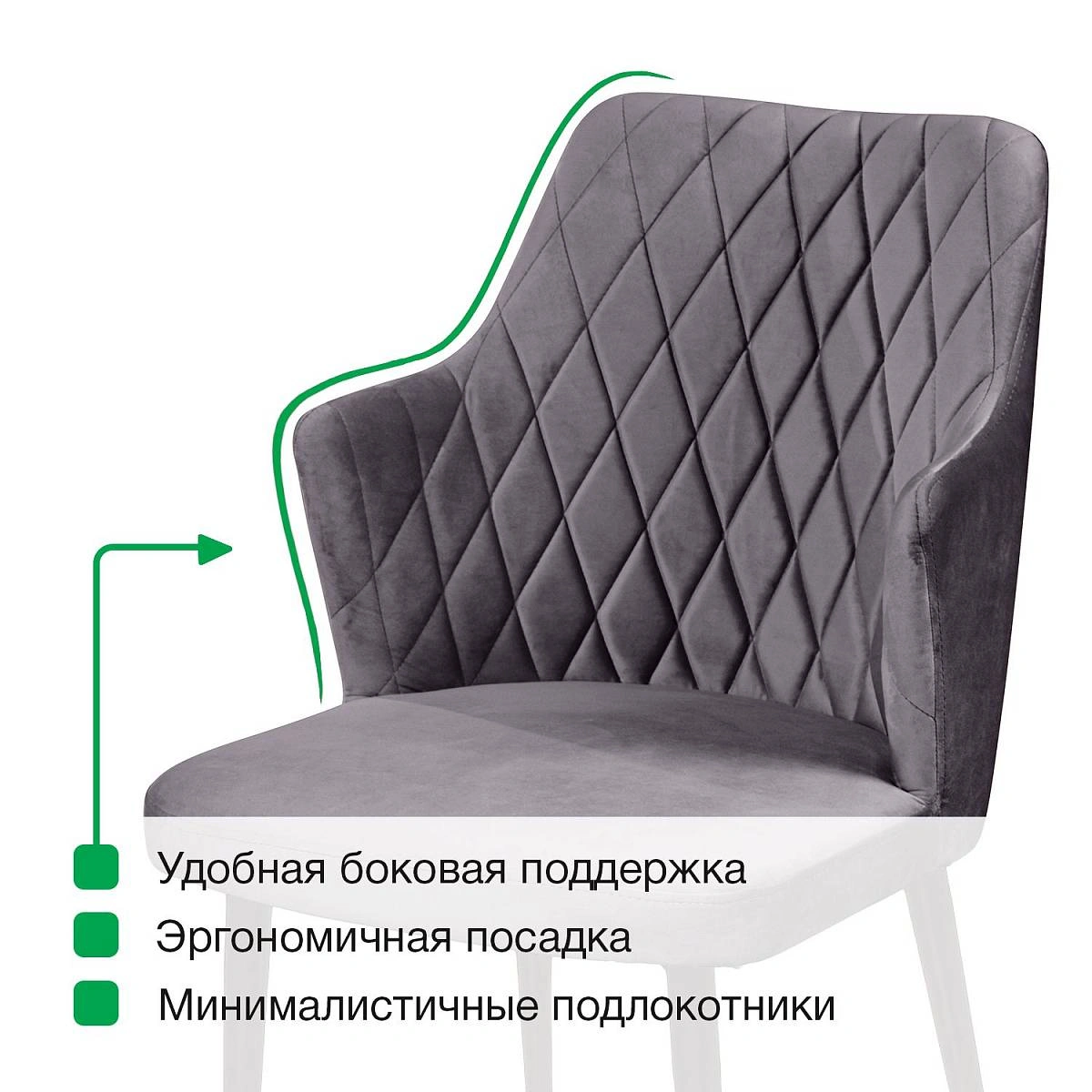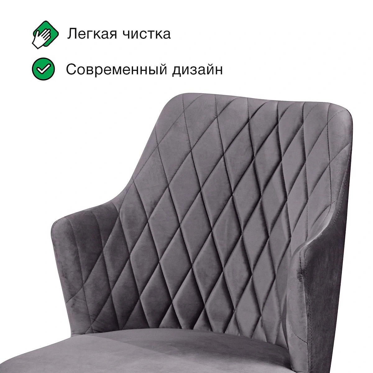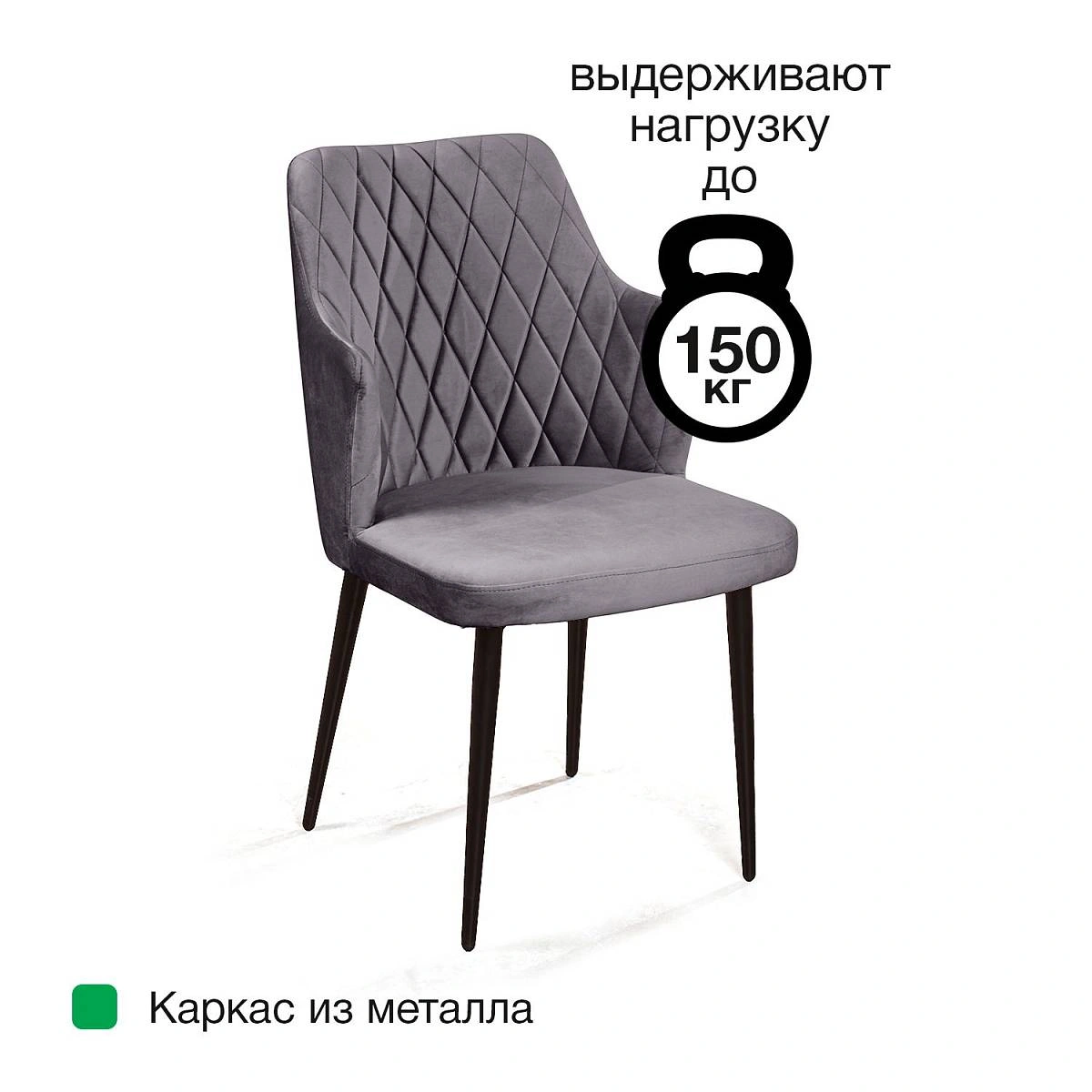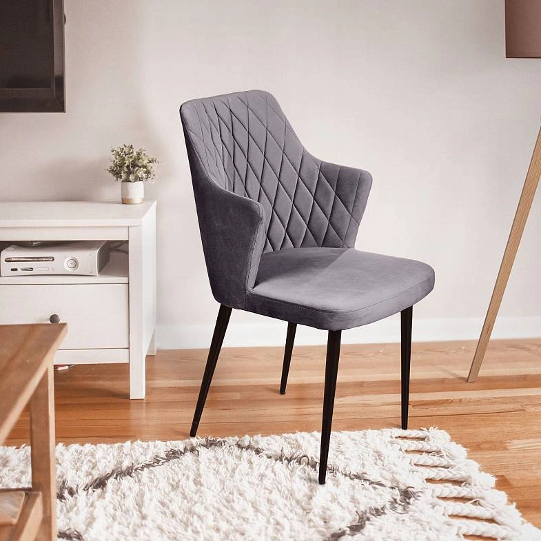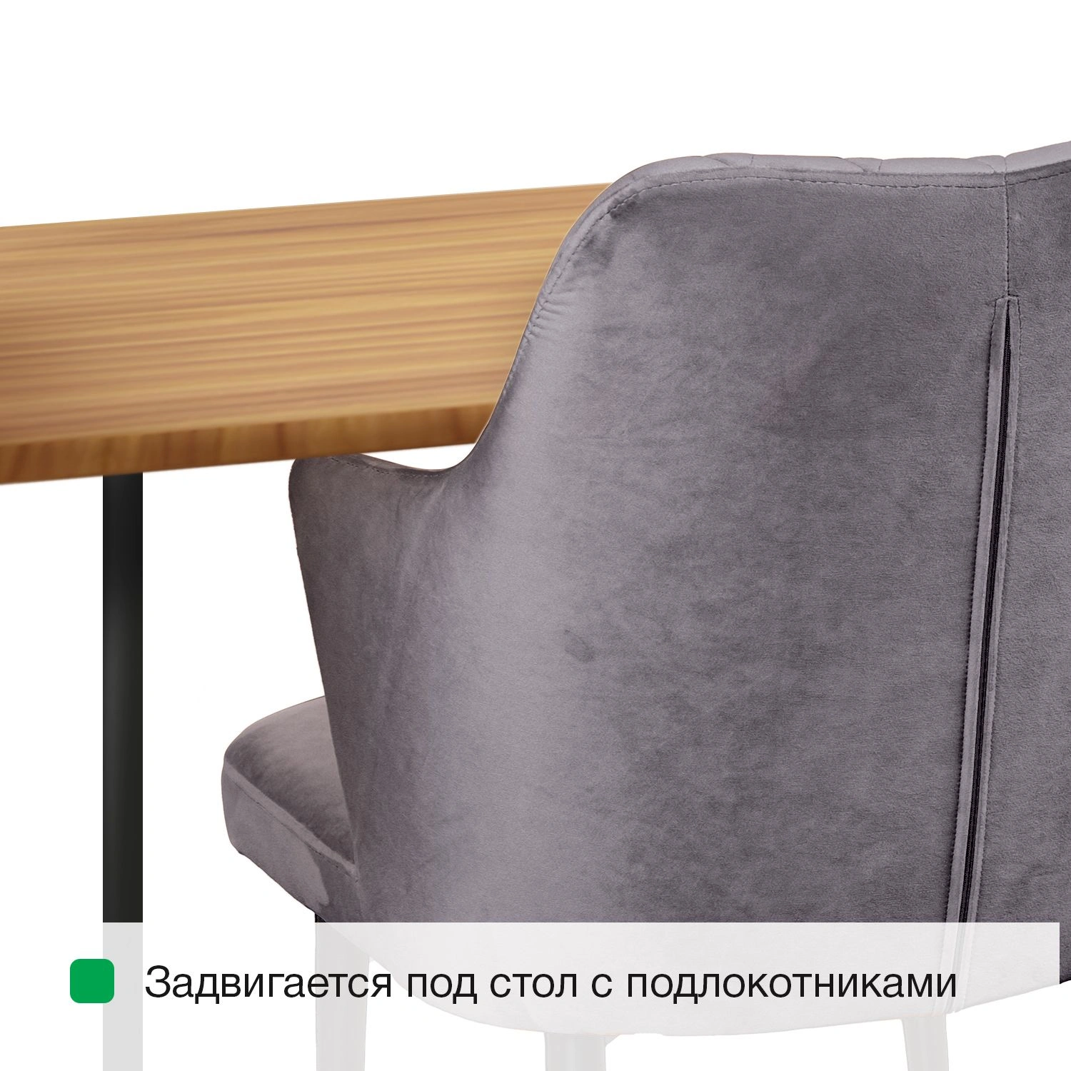 Стул с подлокотниками Hunt ромб, комплект (4шт), бархат серый 27 / чёрный конус