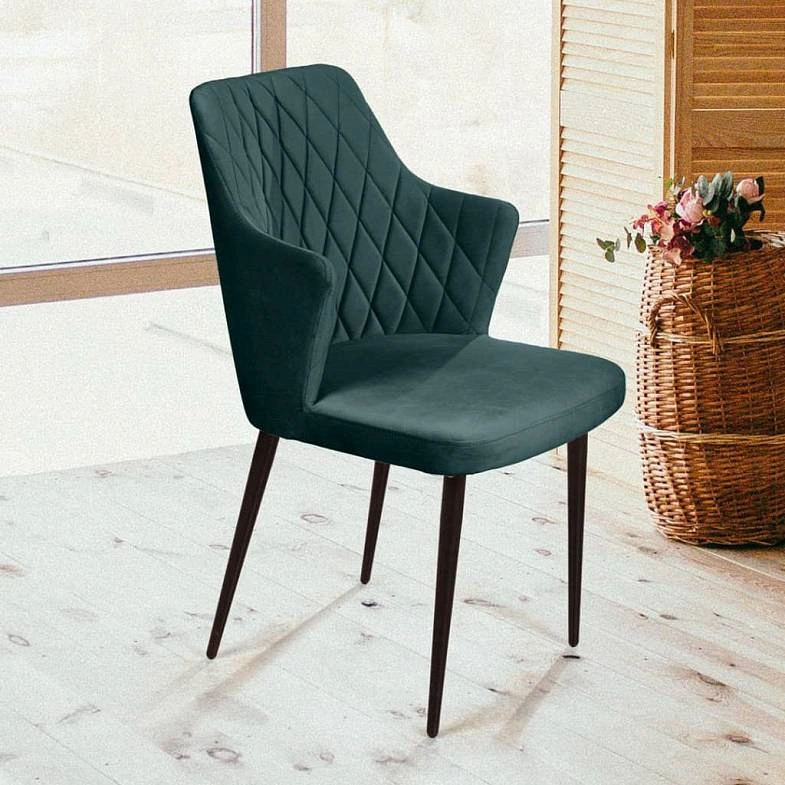 Стул с подлокотниками Hunt ромб, комплект (4шт), бархат зелёный 19 / чёрный конус