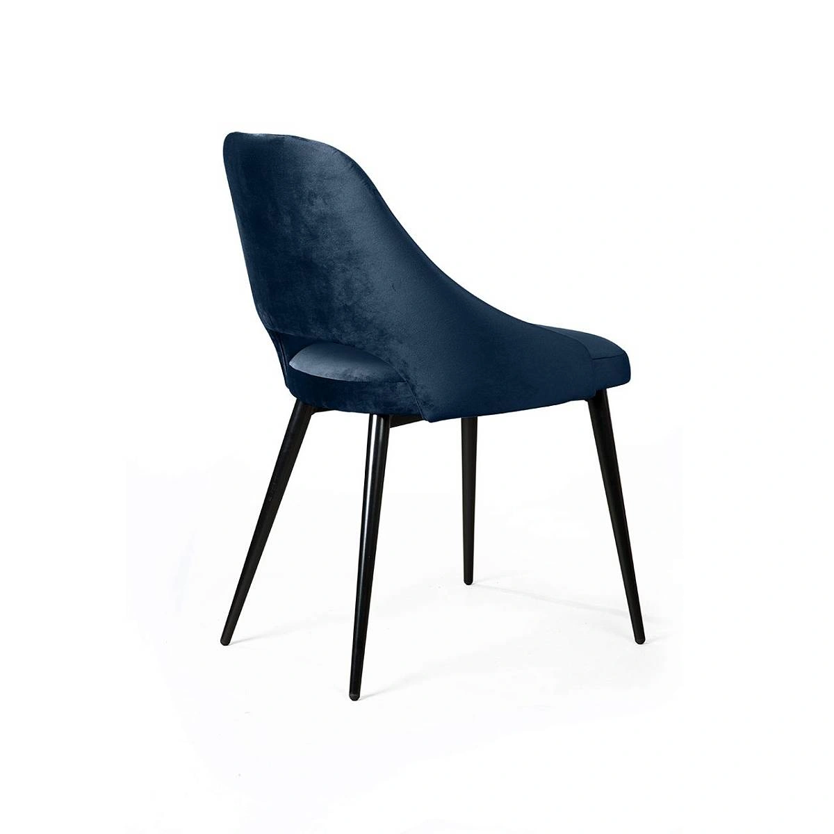 Изюминка стула William – металлические ножки черного матового цвета, излишне скошенные назад, как часть дизайнерской задумки. На ножках предусмотрены специальные пластиковые накладки, которые придают стулу дополнительную устойчивость и защищают пол от царапин.