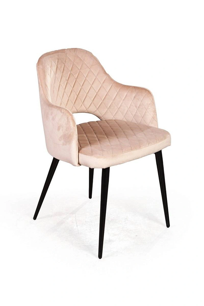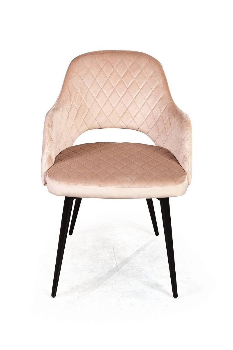 Стул William с подлокотниками ромб, бархат бежевый 5/ черный конус