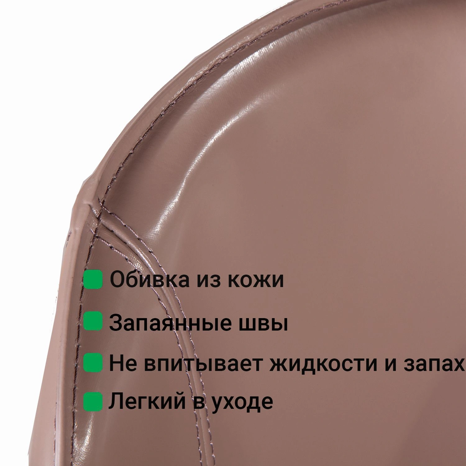 Обивка стула выполнена в регенерированной коже – обивочном материале, который сделан путём переплетения расщеплённых волокон натуральной кожи. В состав модифицированной кожи также входят полимеры и специальные дубильные добавки.