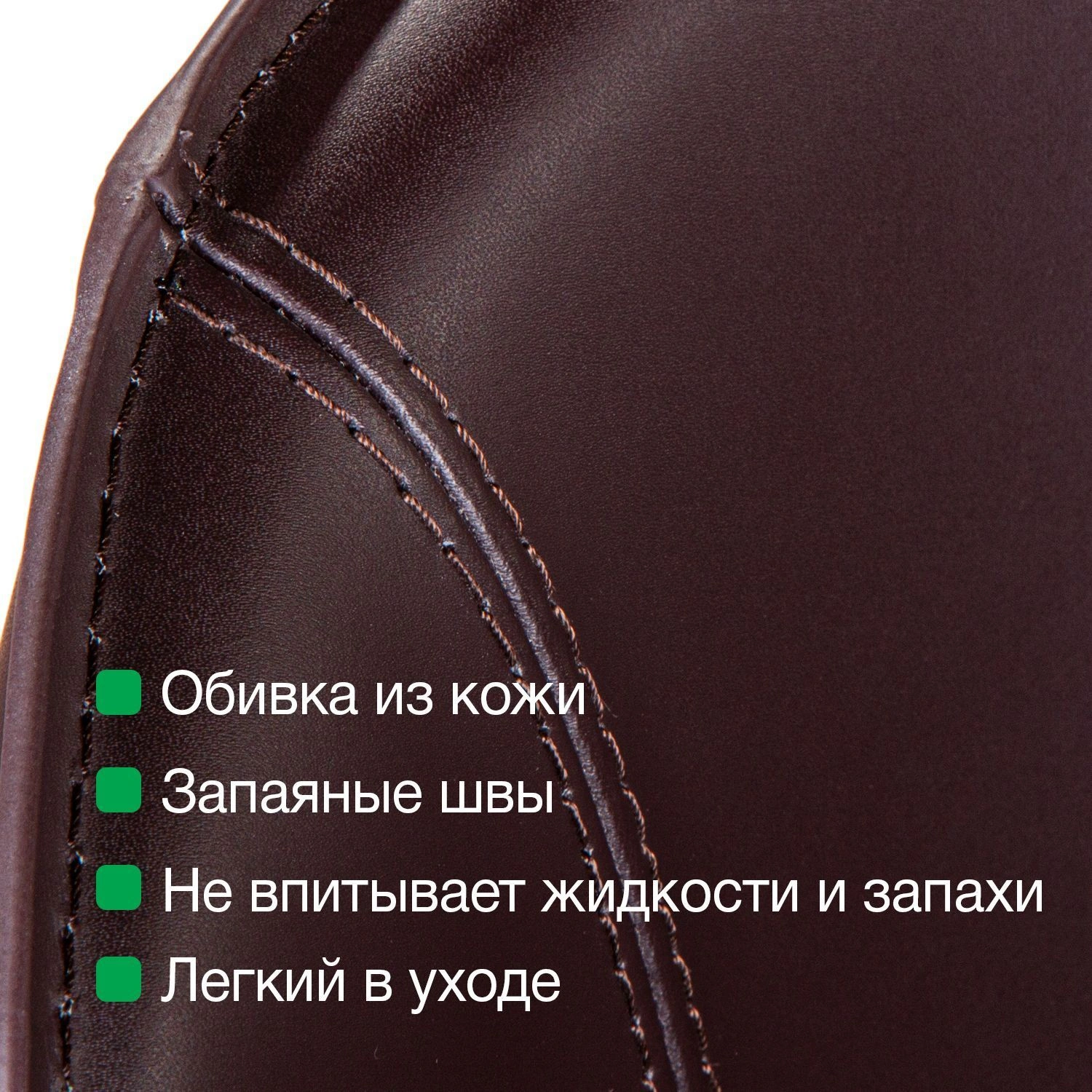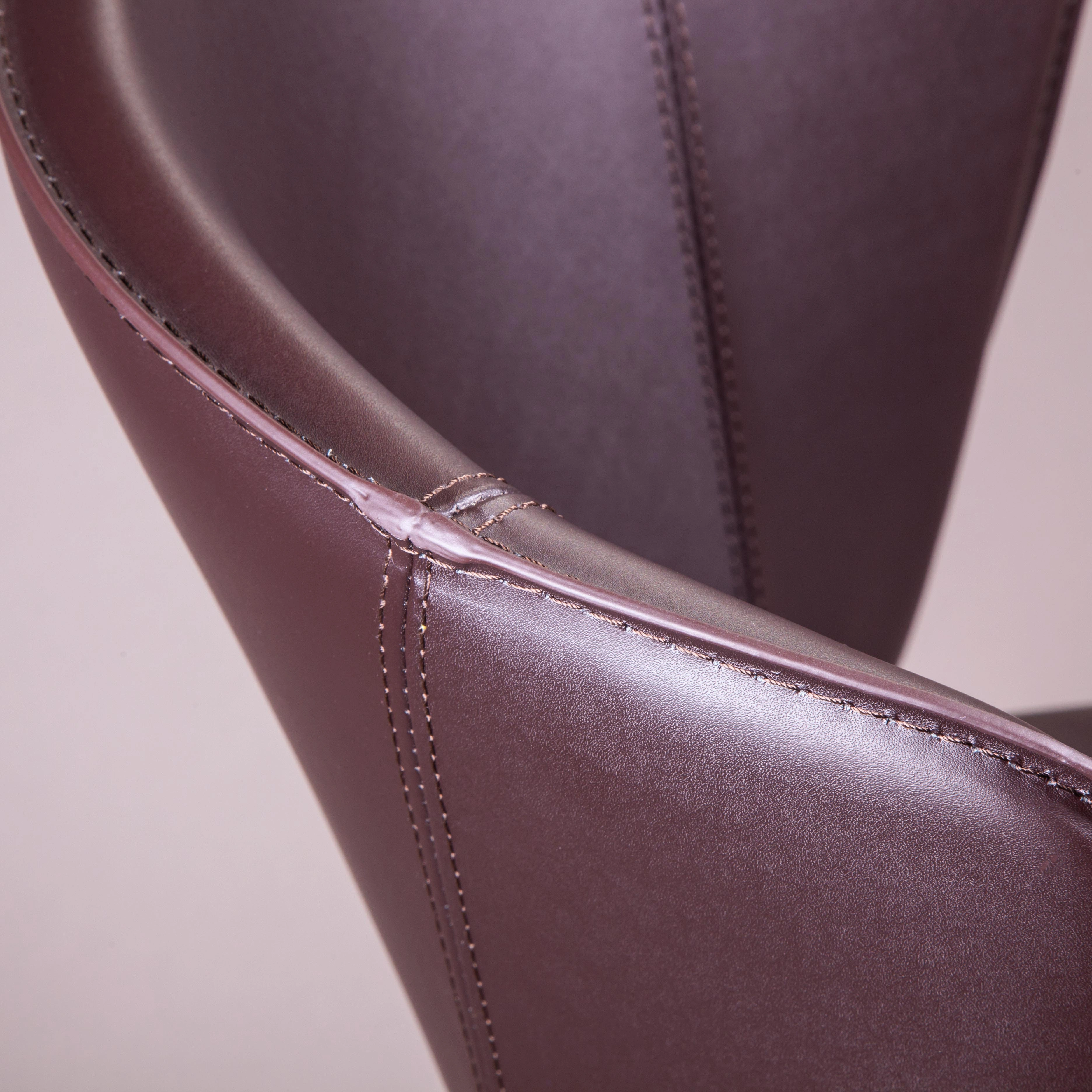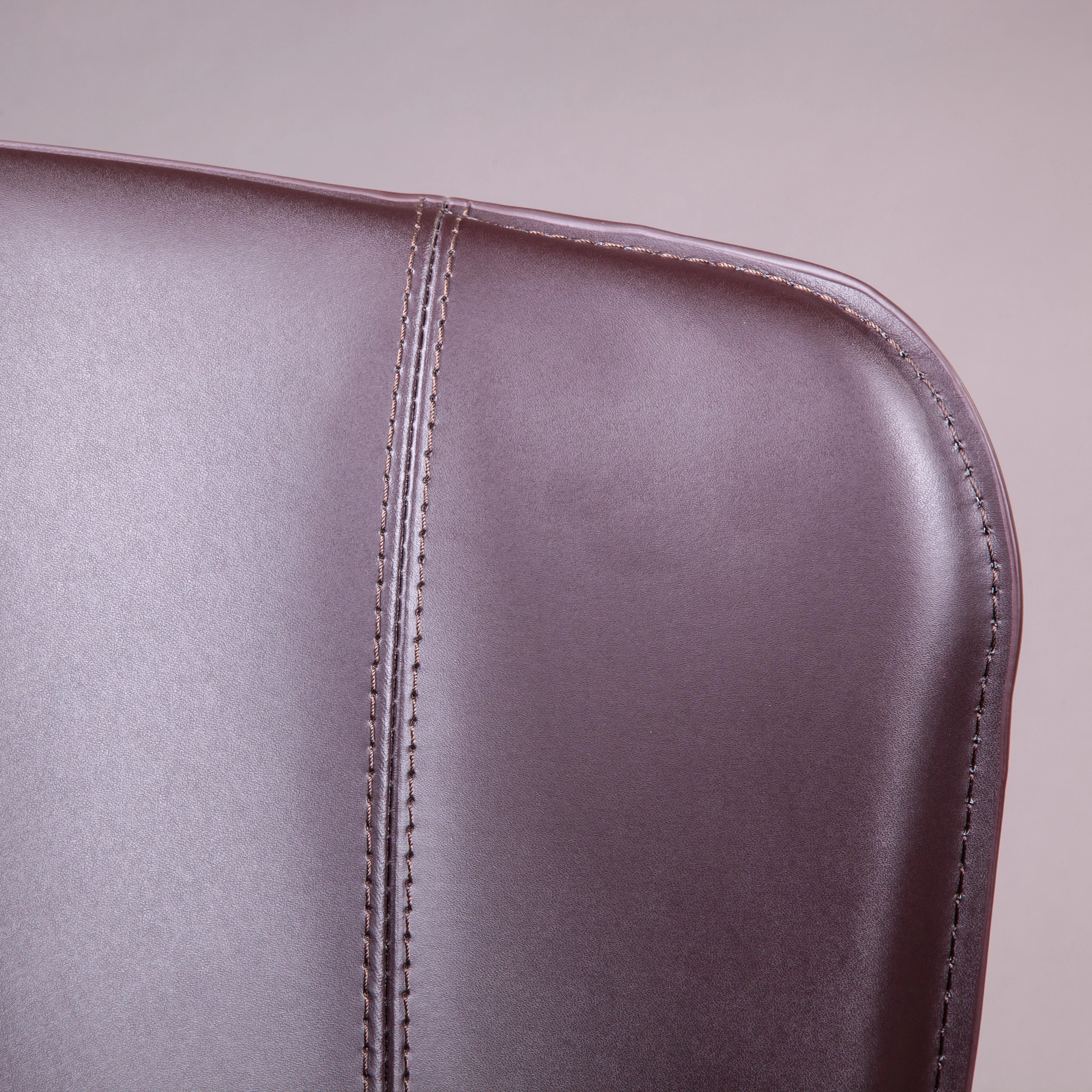 Обивка стула выполнена в регенерированной коже – обивочном материале, который сделан путём переплетения расщеплённых волокон натуральной кожи. В состав модифицированной кожи также входят полимеры и специальные дубильные добавки.