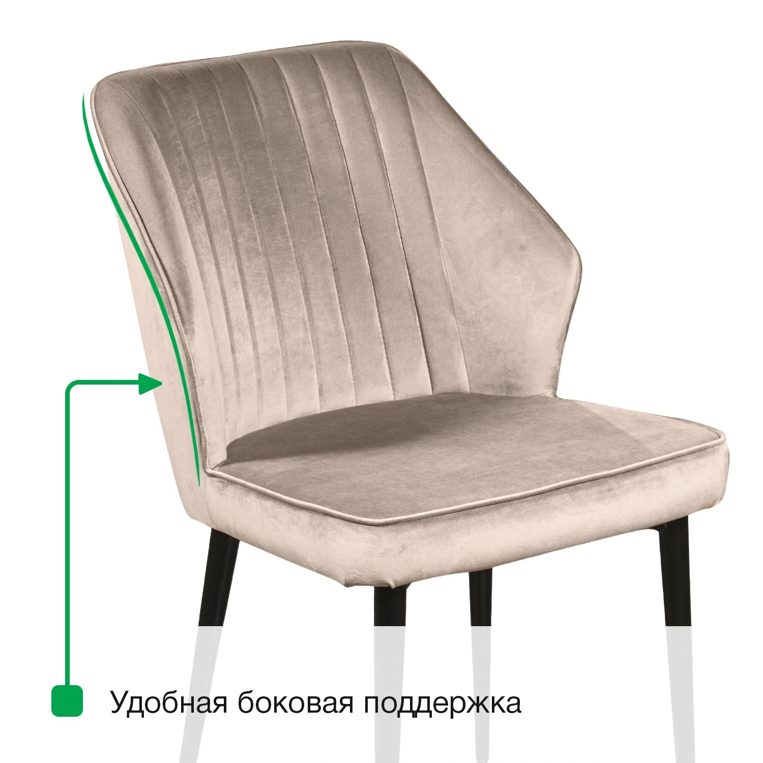 Изюминка стула Berg – невероятно тонкие металлические ножки черного матового цвета, излишне скошенные назад, как часть дизайнерской задумки. На ножках предусмотрены специальные пластиковые накладки, которые придают стулу дополнительную устойчивость и защищают пол от царапин.