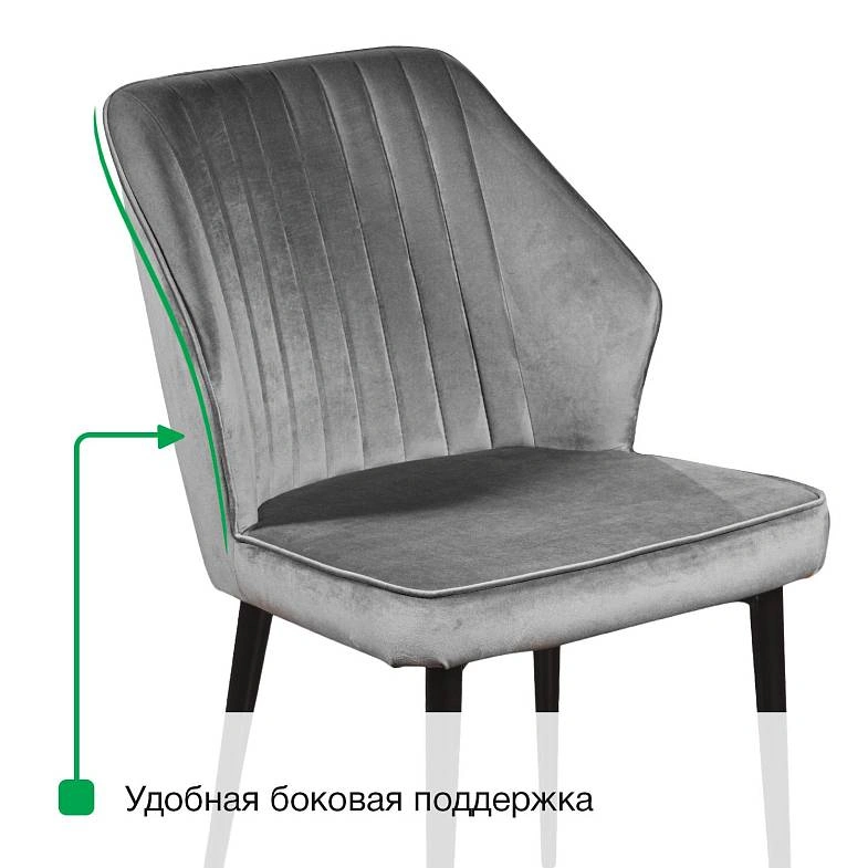 Изюминка стула Berg – невероятно тонкие металлические ножки черного матового цвета, излишне скошенные назад, как часть дизайнерской задумки. На ножках предусмотрены специальные пластиковые накладки, которые придают стулу дополнительную устойчивость и защищают пол от царапин.