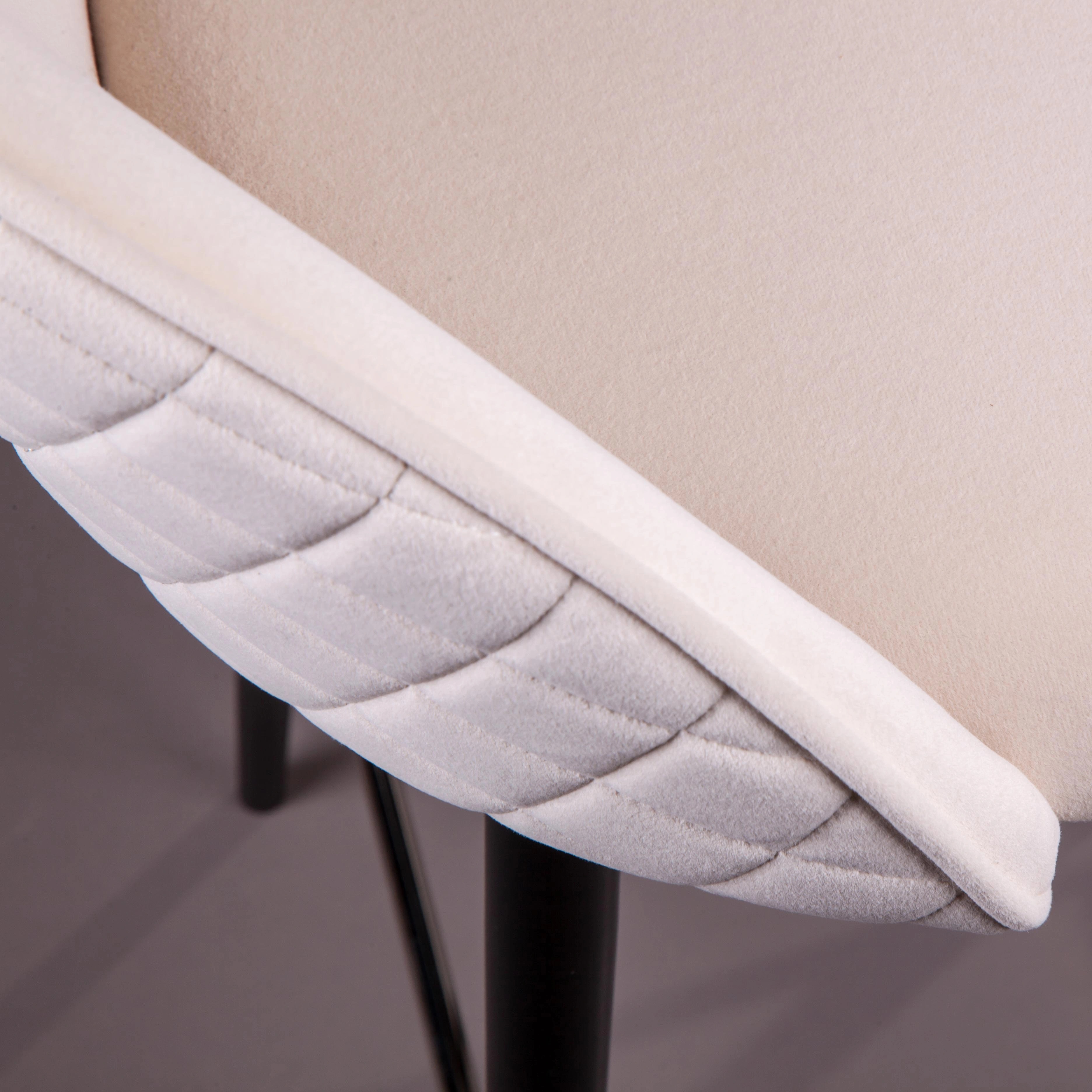 Стильная современная модель, в которой сочетаются плавные формы с остроконечными ножками. Широкое мягкое сиденье без подлокотников располагает к полноценному отдыху. Просторная и изогнутая спинка расширяется ближе к основанию, делая форму стула максимально удобной для тела. Изюминка модели – отделка задней спинки в виде ромбов. Благодаря сочетанию чёрных матовых металлических ножек и мягкой обивки, стулья будут прекрасно смотреться как в помещениях в стиле LOFT, так и в более нейтральном современном интерьере. Особенно эффектно будет смотреться группа, например, из 6 одинаковых (или разноцветных) предметов за большим обеденным столом.
