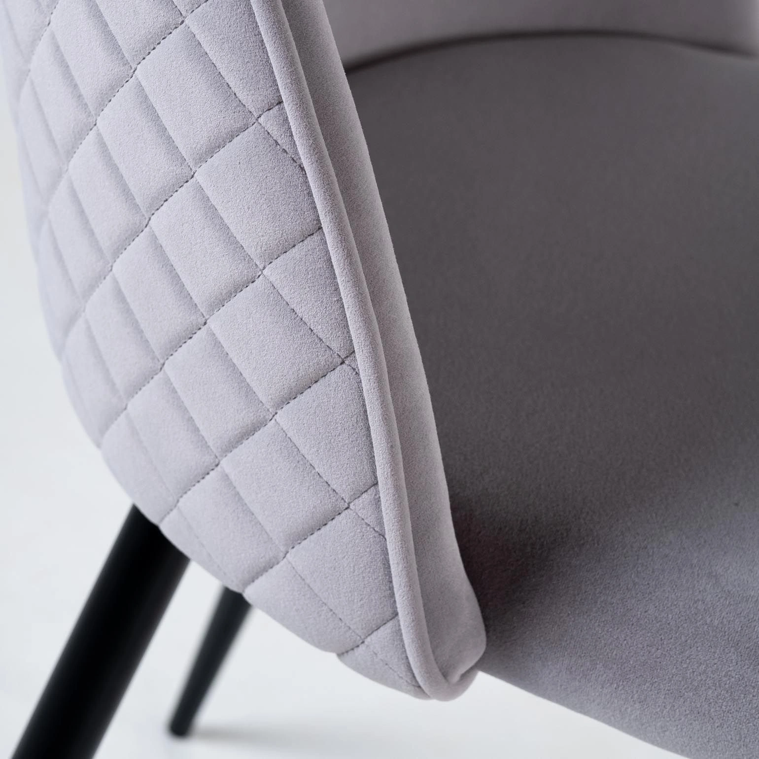 Стильная современная модель, в которой сочетаются плавные формы с остроконечными ножками. Широкое мягкое сиденье без подлокотников располагает к полноценному отдыху. Просторная и изогнутая спинка расширяется ближе к основанию, делая форму стула максимально удобной для тела. Изюминка модели – отделка задней спинки в виде ромбов. Благодаря сочетанию чёрных матовых металлических ножек и мягкой обивки, стулья будут прекрасно смотреться как в помещениях в стиле LOFT, так и в более нейтральном современном интерьере. Особенно эффектно будет смотреться группа, например, из 6 одинаковых (или разноцветных) предметов за большим обеденным столом.