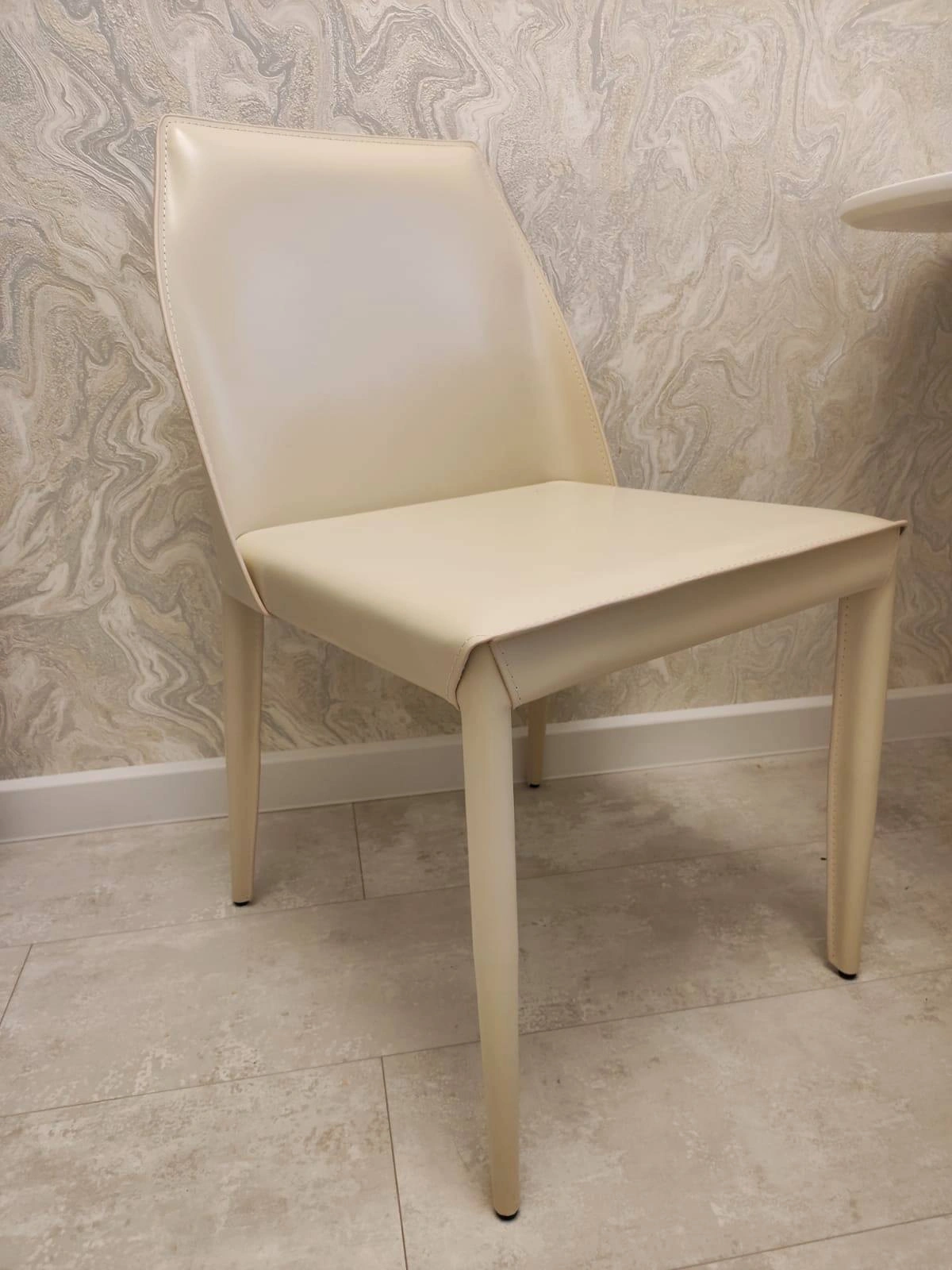 Данная модель - настоящая находка для ценителей натуральной кожи, ведь она способна превратить любое помещение в дорогое и презентабельное! Обивка стула выполнена в регенерированной коже – обивочном материале, который сделан путём переплетения расщеплённых волокон натуральной кожи. В состав модифицированной кожи также входят полимеры и специальные дубильные добавки. Благодаря такому способу производства, регенерированная кожа схожа по свойствам с натуральной, "дышит", реагирует на тепло тела, но при этом отличается повышенной износостойкостью и прочностью.