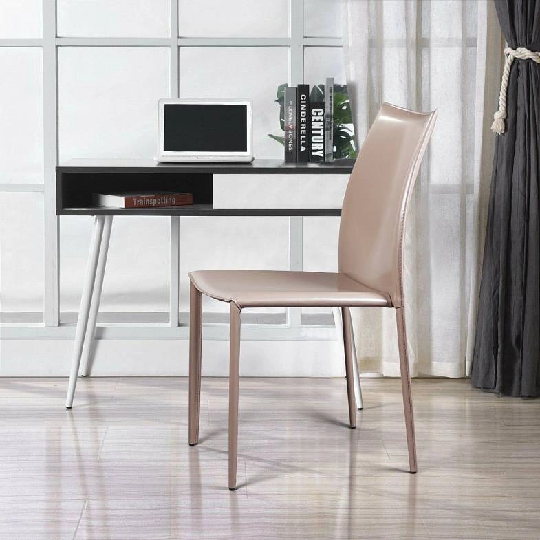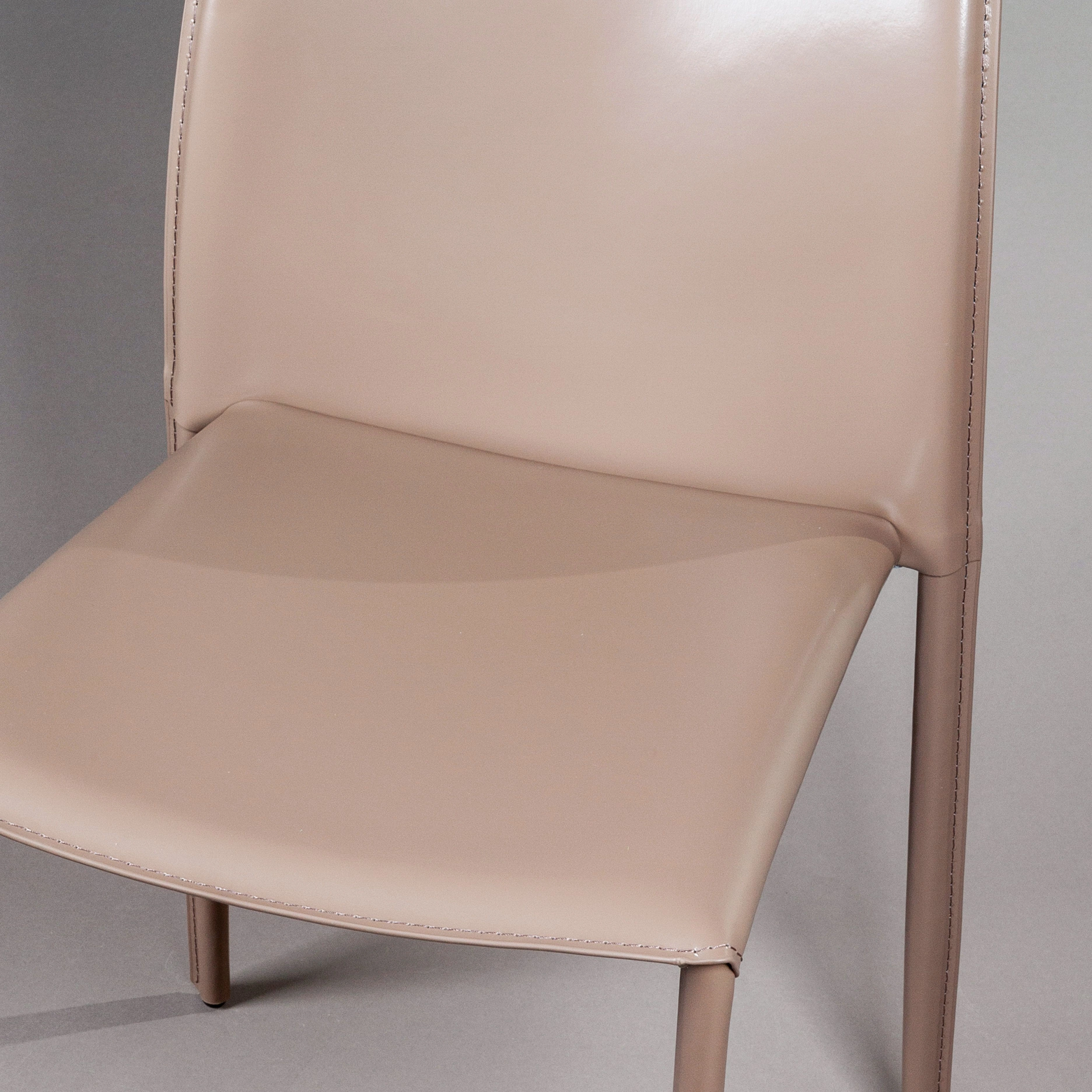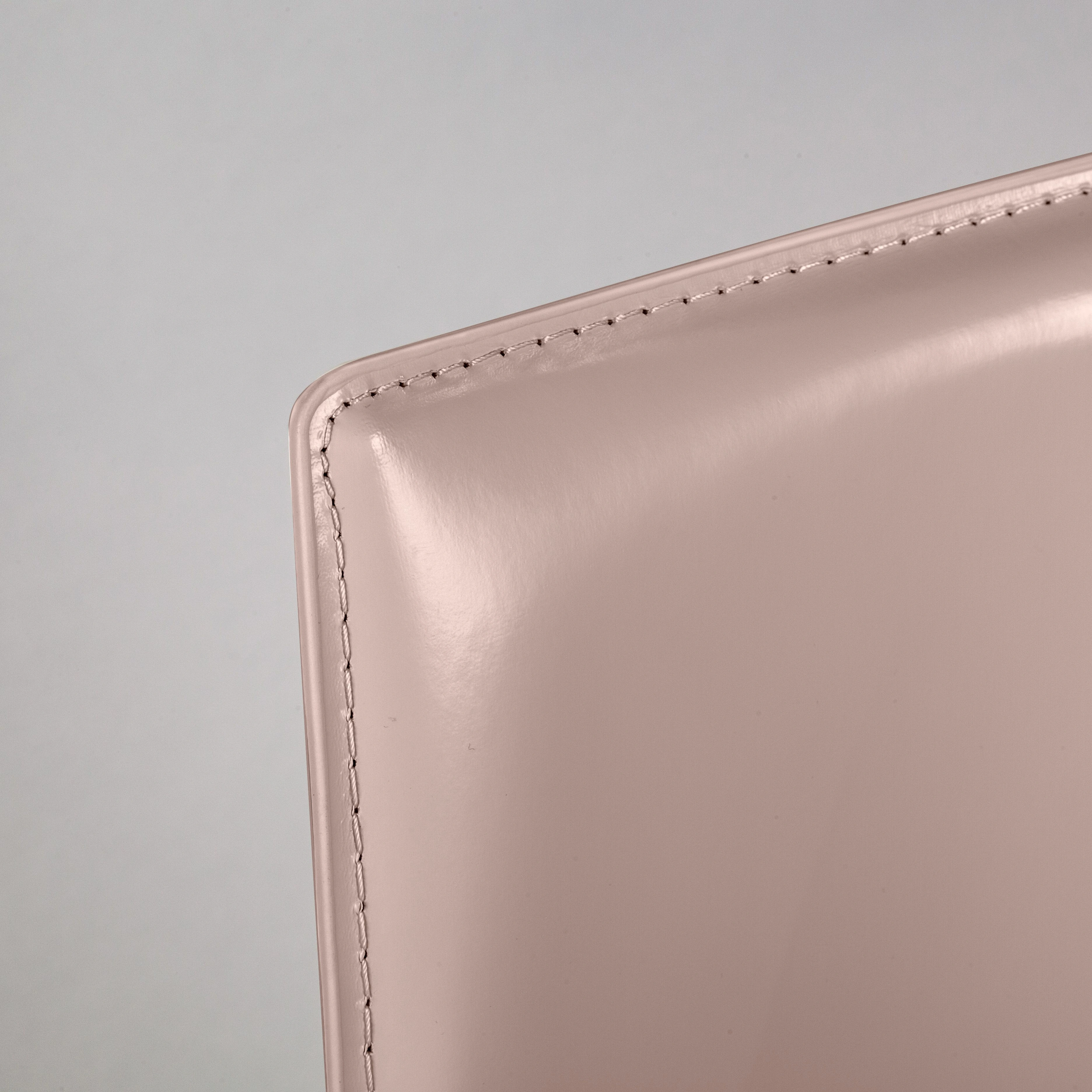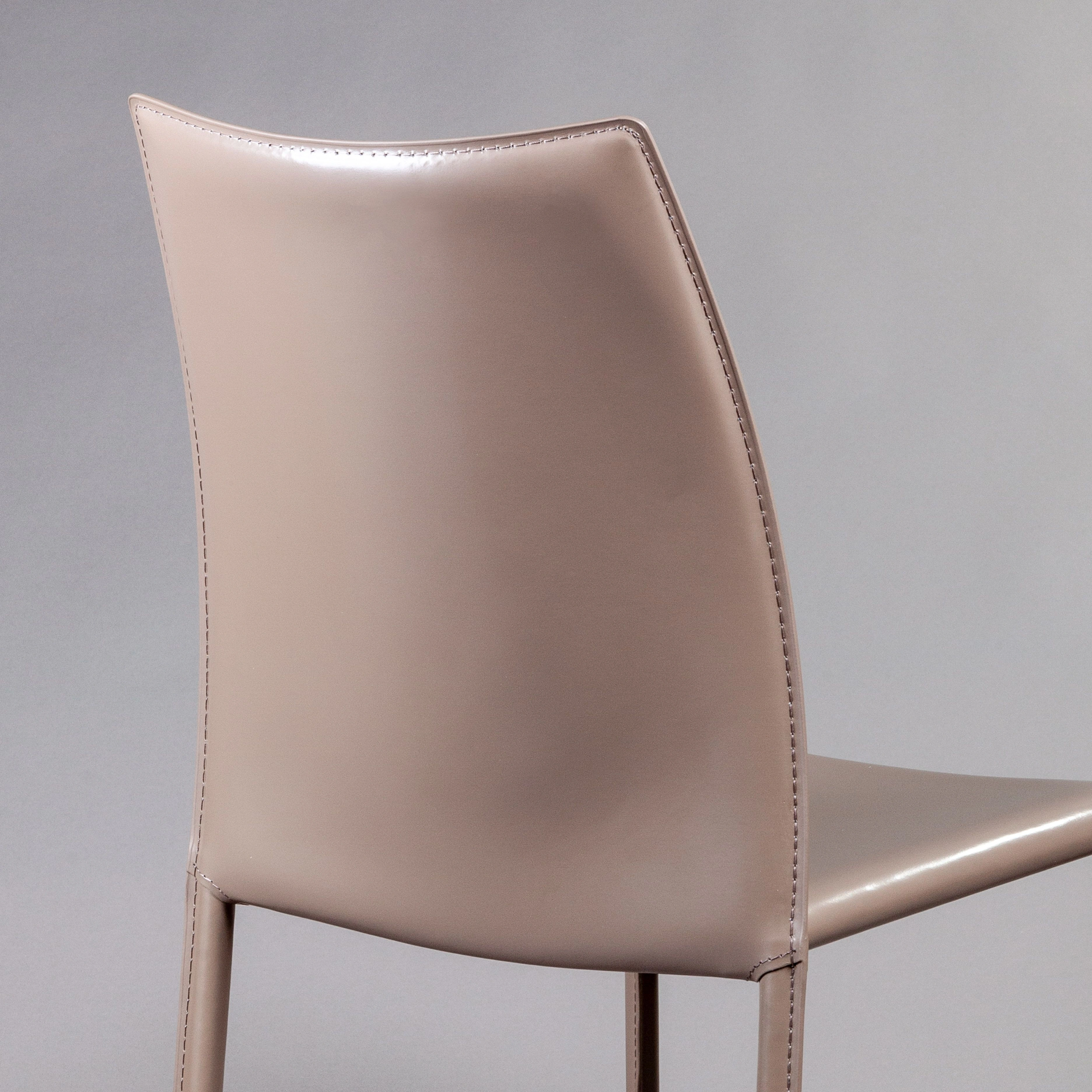 Крепкие металлические ножки скрыты под натуральной кожей такого же цвета, как и сам стул, благодаря этому создается лаконичный образ единого целого. На ножках предусмотрены специальные пластиковые накладки, которые придают стулу дополнительную устойчивость и защищают пол от царапин.