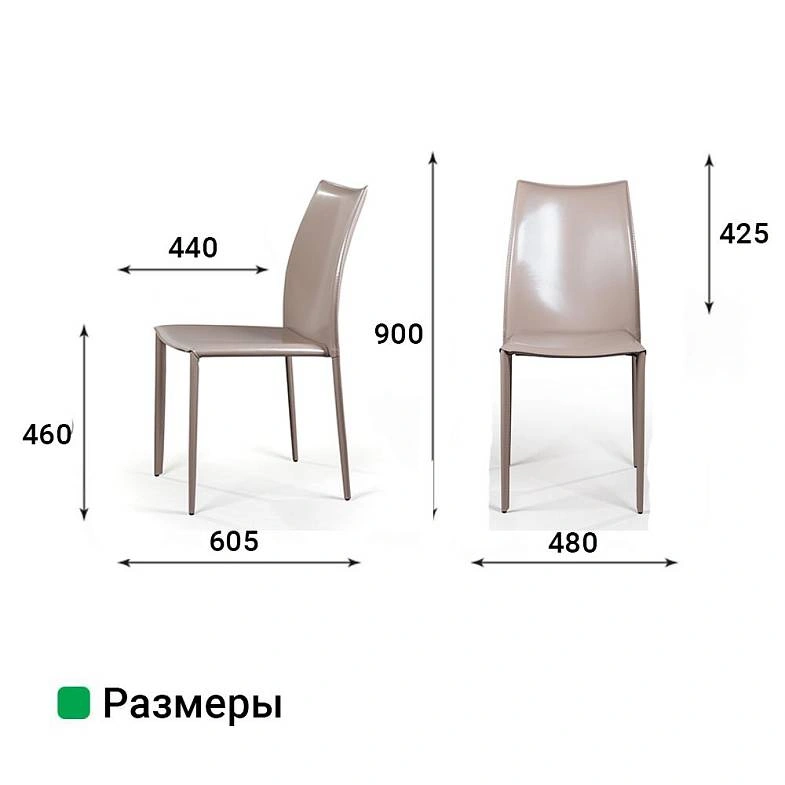 Металлические ножки как продолжение спинки и сиденья обтянуты кожей такого же цвета.