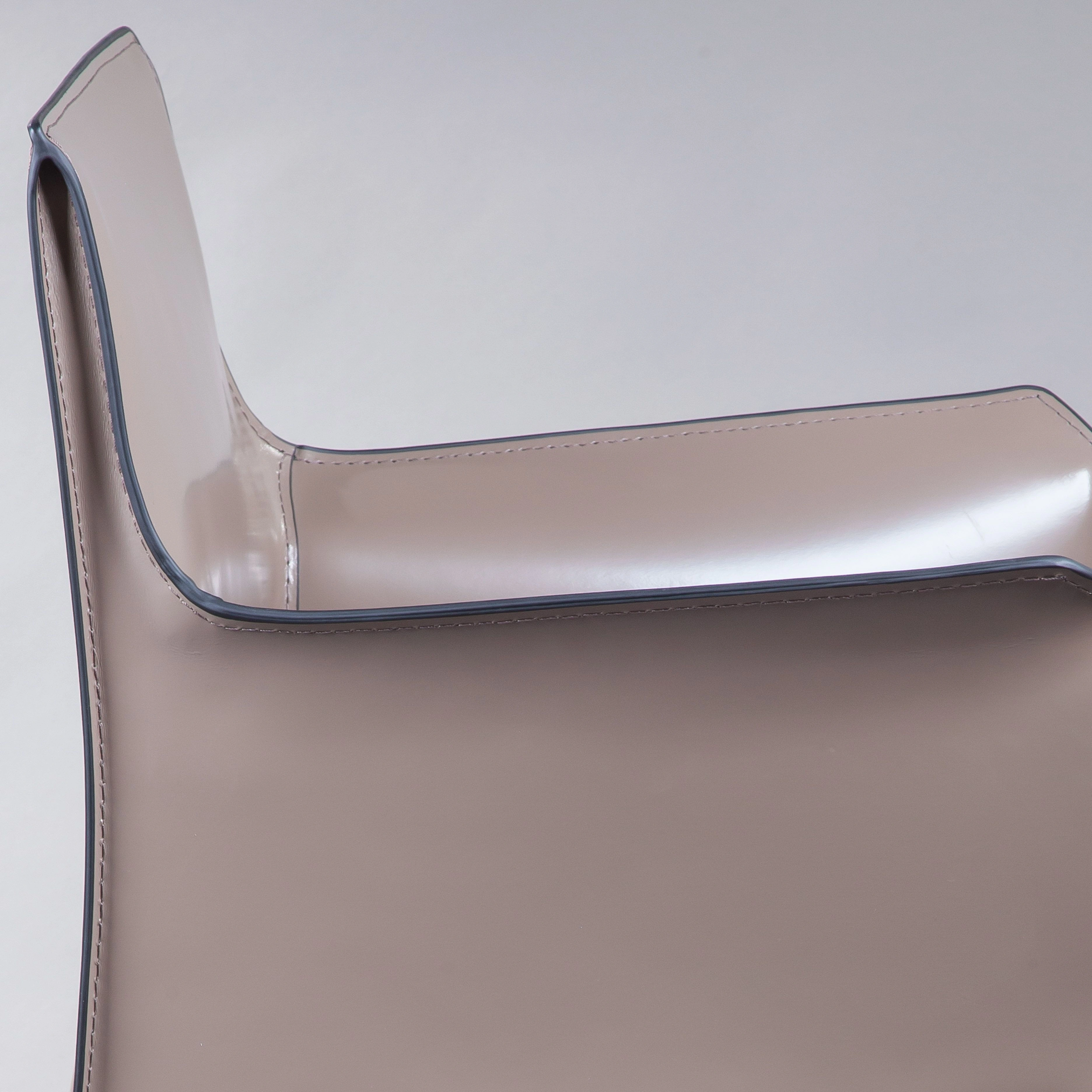 Крепкие металлические ножки скрыты под натуральной кожей такого же цвета, как и сам стул, благодаря этому создается лаконичный образ единого целого. На ножках предусмотрены специальные пластиковые накладки, которые придают стулу дополнительную устойчивость и защищают полот царапин.