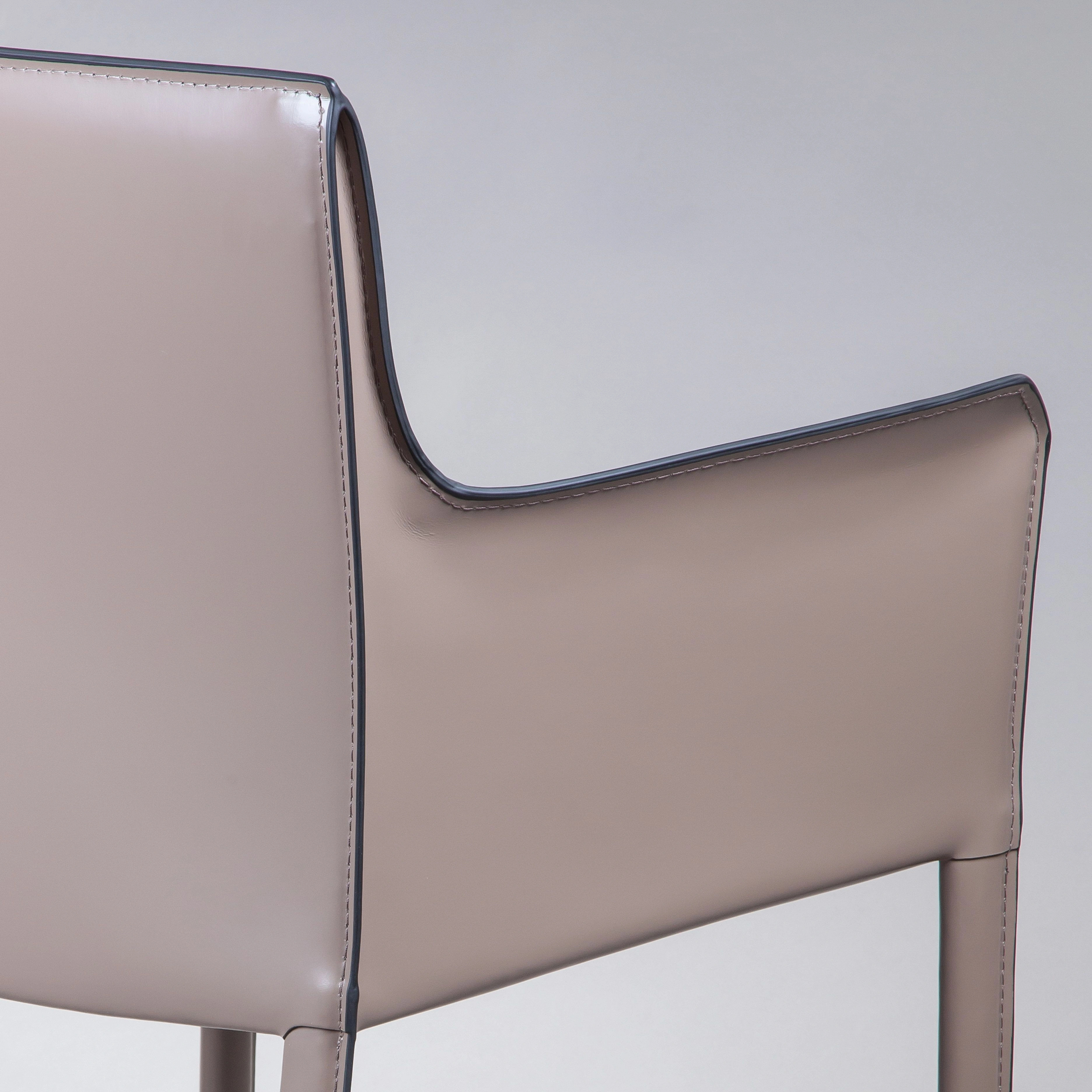 Кожаный стул Barrie всегда будет выгодно смотреться в интерьере, подчеркивая вкус и статус владельца. Модель отличается привлекательным внешним видом и практичностью. Стиль, в котором он выполнен, можно охарактеризовать как мягкая геометрия! Прямоугольное сиденье, высокая спинка с небольшим уклоном назад делают стул невероятно удобным. Высокие подлокотники в дизайне стула как дополнительная опция для еще большего комфорта. Главная особенность модели – плавный переход спинки в сиденье, образующий мягкий изгиб. Ножки обеденного стула, также обтянутые кожей, создают единый образ и являются визуальным продолжением сиденья.