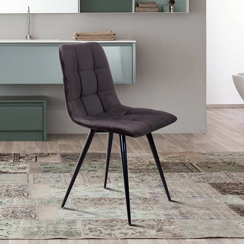 Стул UNO, бархат светло-серый  26/ чёрный конус