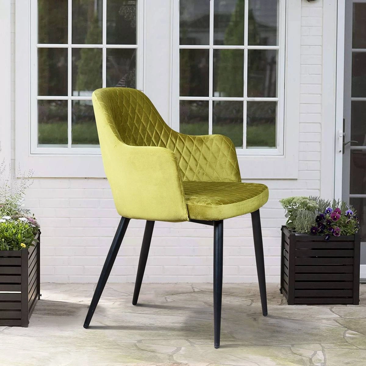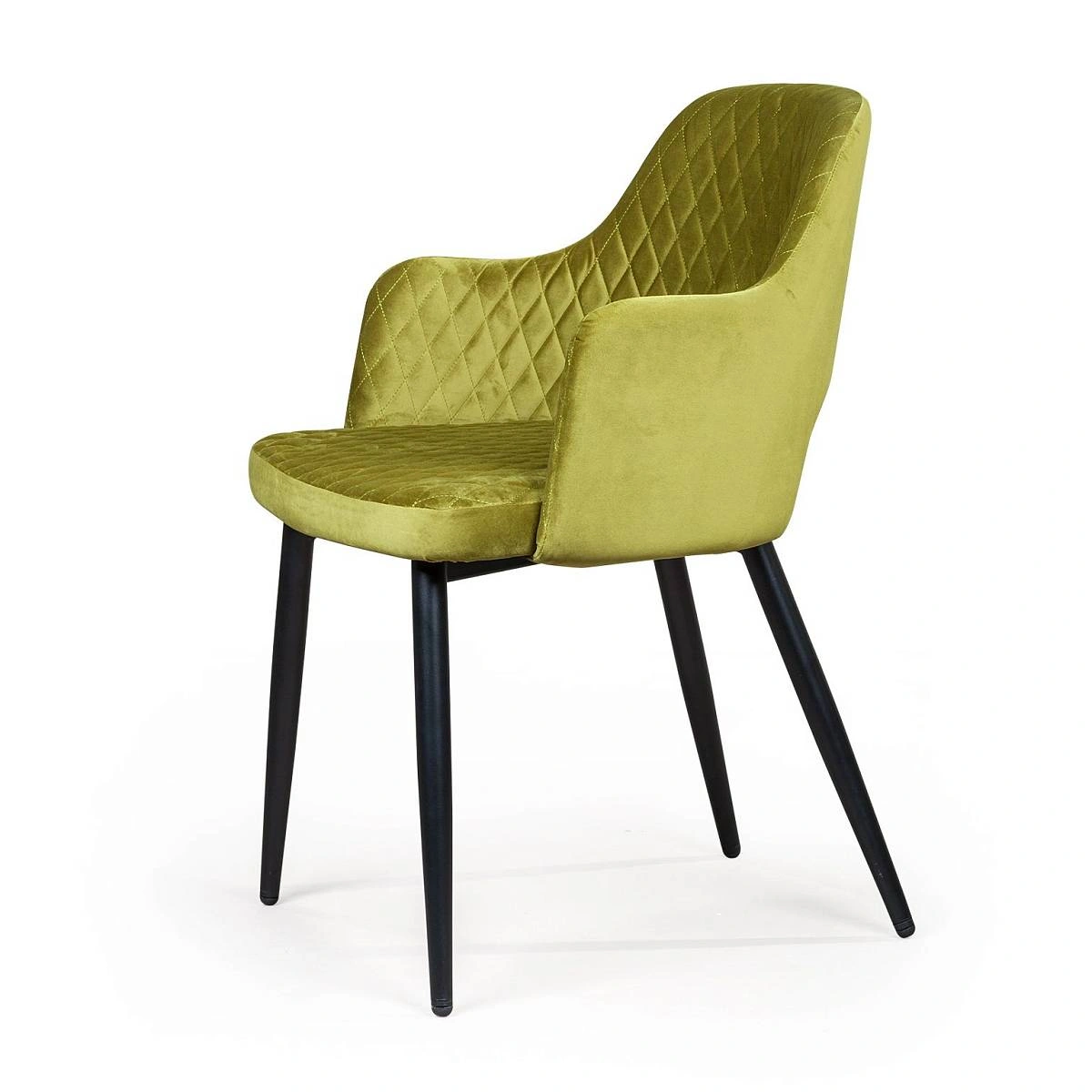 Плавные линии, изящные ножки, просторное сиденье и высокие подлокотники делают модель невероятно удобной для отдыха. Оригинальная прорезь у основания спинки добавляет конструкции легкости и воздушности. Стильная отделка ромбом на спинке и сиденье в сочетании с благородным бархатом создает неповторимые переливы и придает стулу особую утонченность.