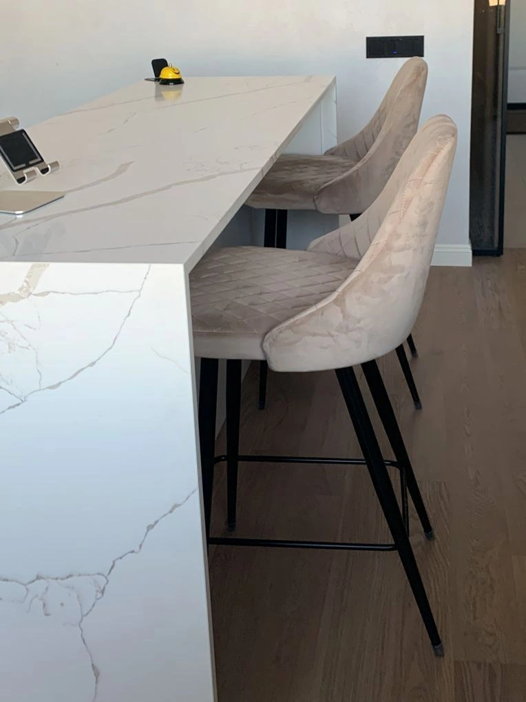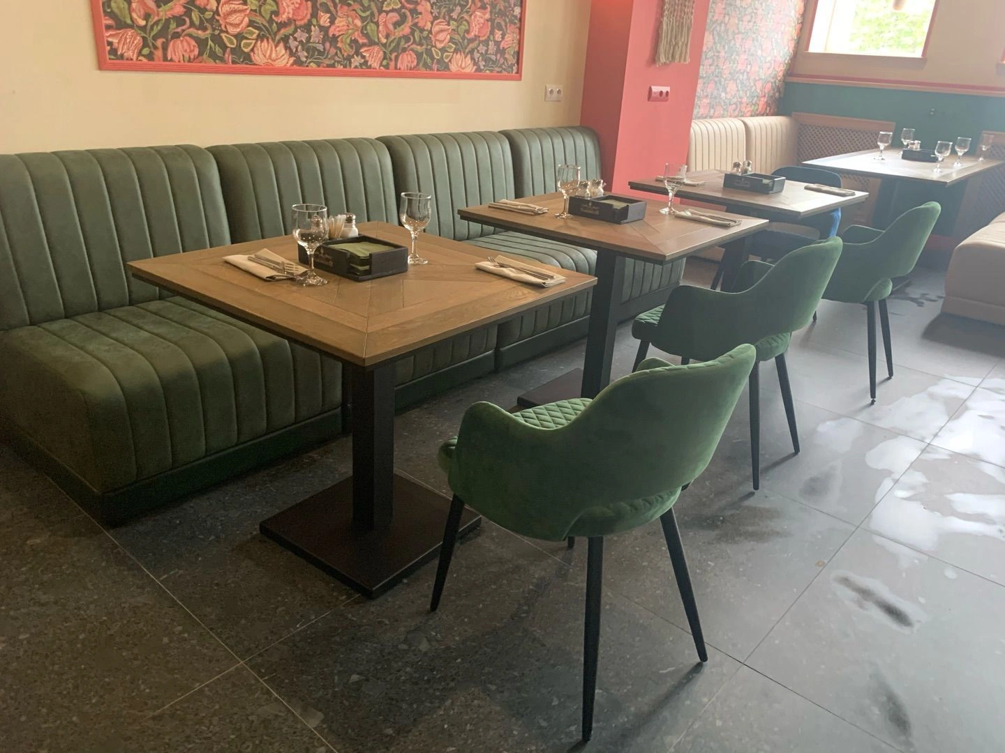 Мягкий бархатистый велюр, высококачественный материал с повышенной износостойкостью. Он прост в уходе и не потеряет достойный вид долгое время. Ткань прочная, специально предназначена для ежедневного использования дома или в заведениях общественного типа (кафе, рестораны).