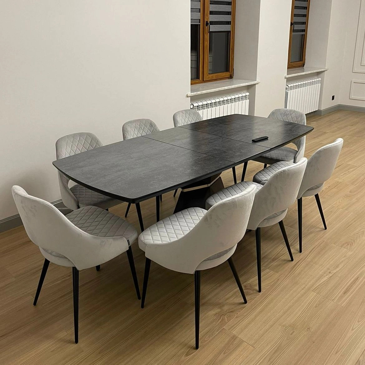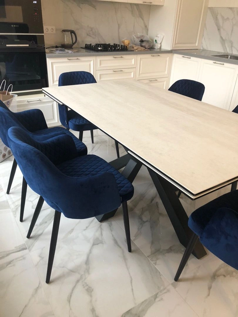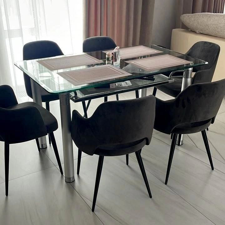 Заказывали комплект - стул "William" ромб в ткани HOLLAND 09 и стол раскладной Diamond (160+40) глазурованное стекло, чёрный. Очень довольны.