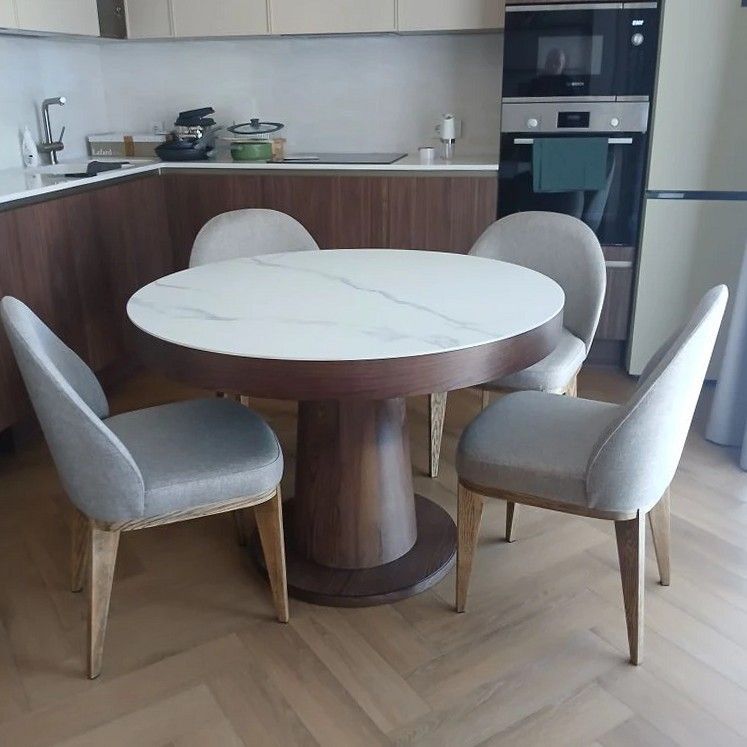 Стол круглый обеденный Бильбо (110+40), керамика матовая белая